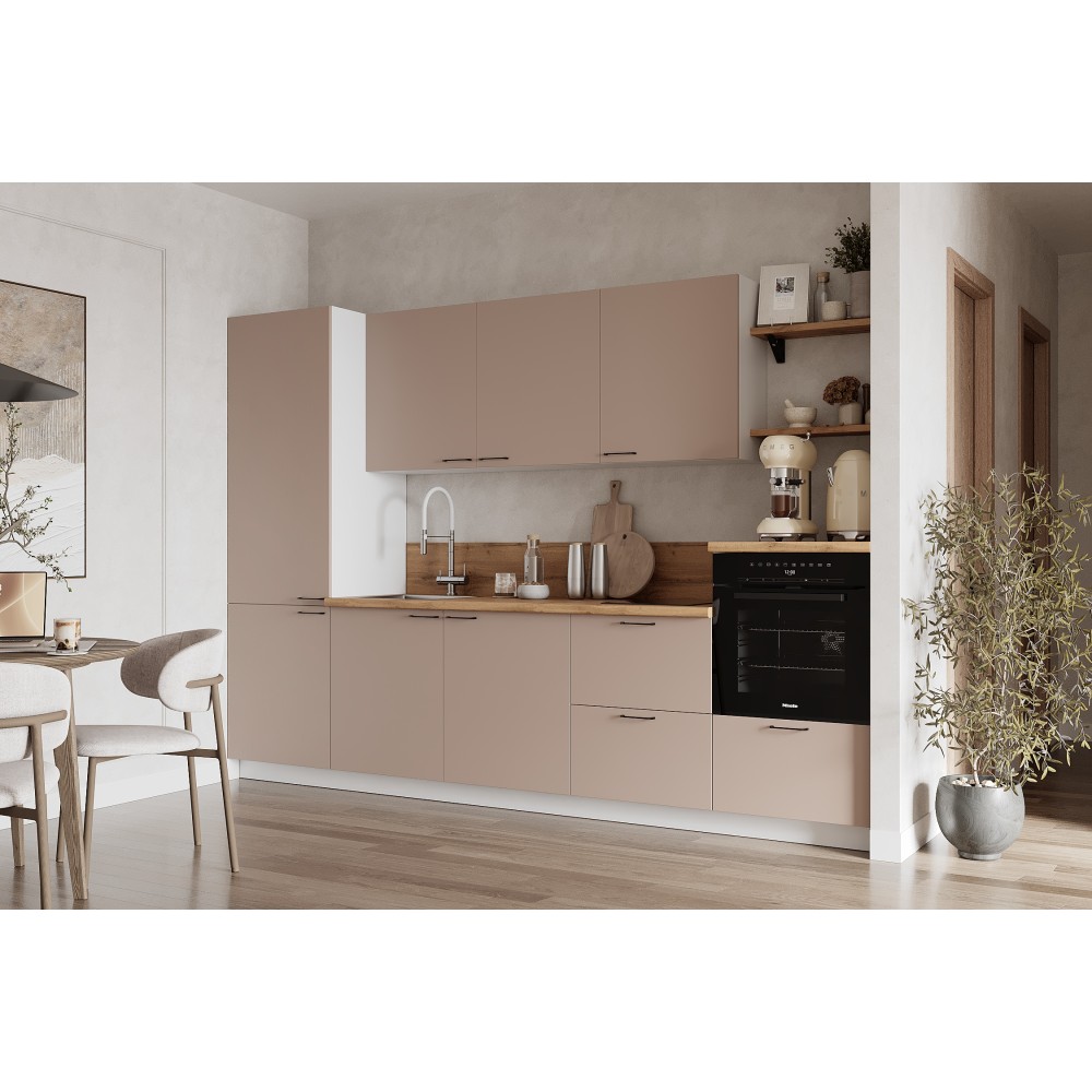 Кухня «Лизет» сочетает петербургскую элегантность и современную функциональность. Вдохновлённая эпохой Петра I и архитектурой Петербурга, она объединяет благородные цвета, тёплую древесную текстуру и лаконичные линии — для создания уютной и гармоничной кухни.