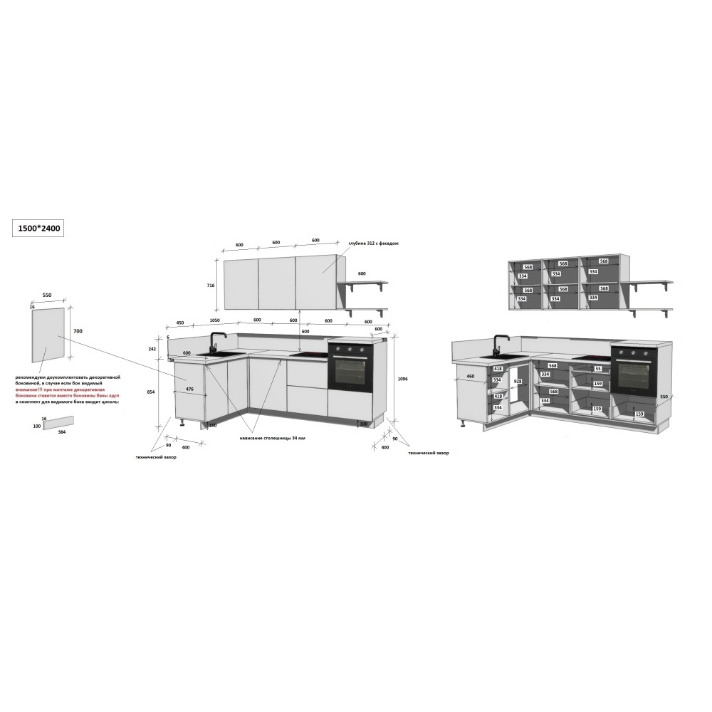 — Цельная столешница: без стыков и зазоров — больше гигиеничности и удобства в уборке.