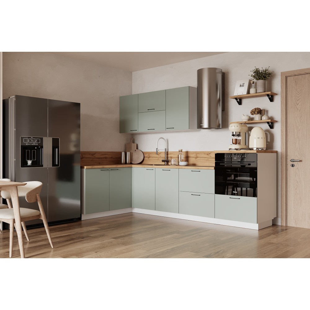 Кухня «Лизет» сочетает петербургскую элегантность и современную функциональность. Вдохновлённая эпохой Петра I и архитектурой Петербурга, она объединяет благородные цвета, тёплую древесную текстуру и лаконичные линии — для создания уютной и гармоничной кухни.