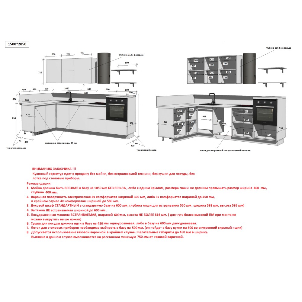 — Цельная столешница: без стыков и зазоров — больше гигиеничности и удобства в уборке.