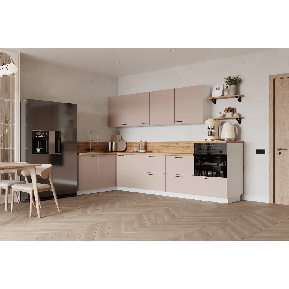 Кухня «Лизет» сочетает петербургскую элегантность и современную функциональность. Вдохновлённая эпохой Петра I и архитектурой Петербурга, она объединяет благородные цвета, тёплую древесную текстуру и лаконичные линии — для создания уютной и гармоничной кухни.