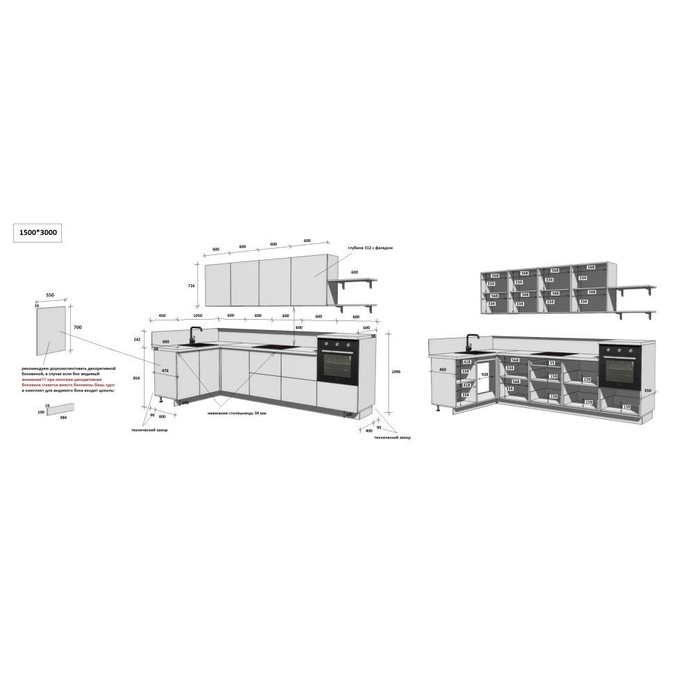 — Цельная столешница: без стыков и зазоров — больше гигиеничности и удобства в уборке.