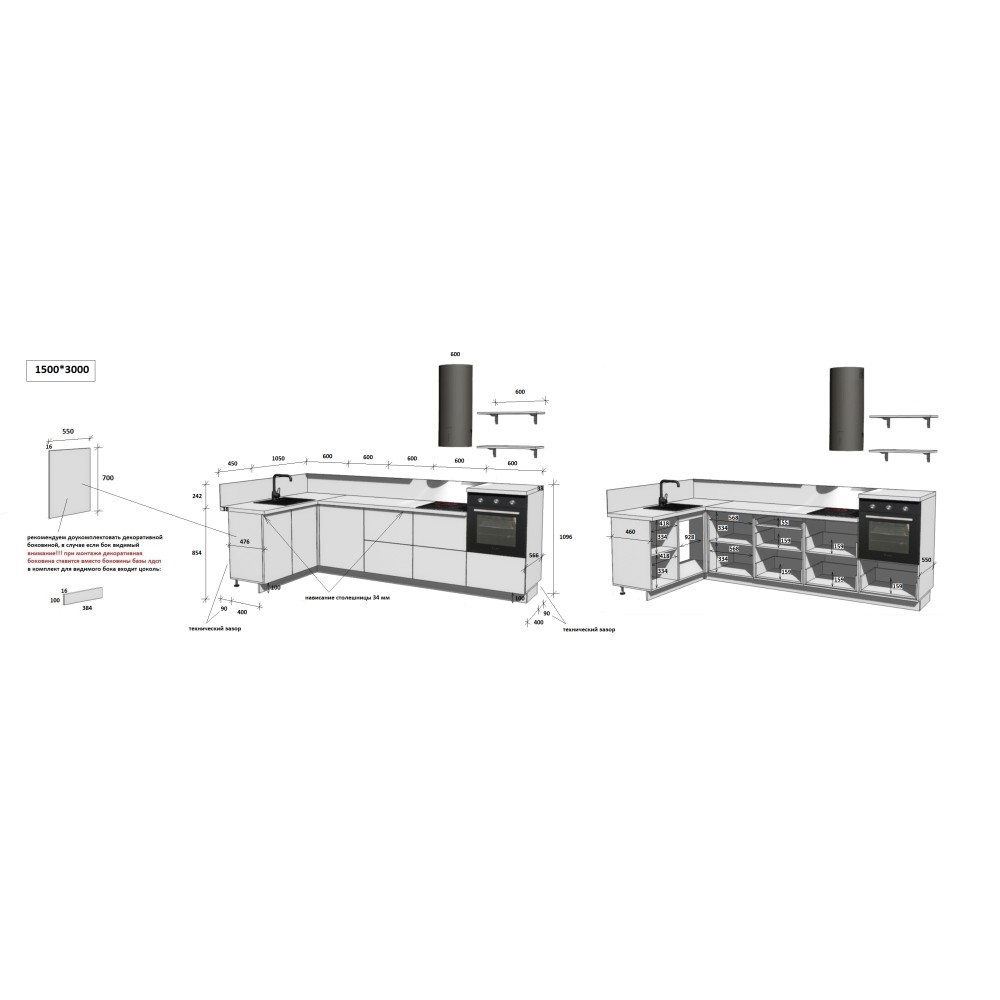 — Цельная столешница: без стыков и зазоров — больше гигиеничности и удобства в уборке.