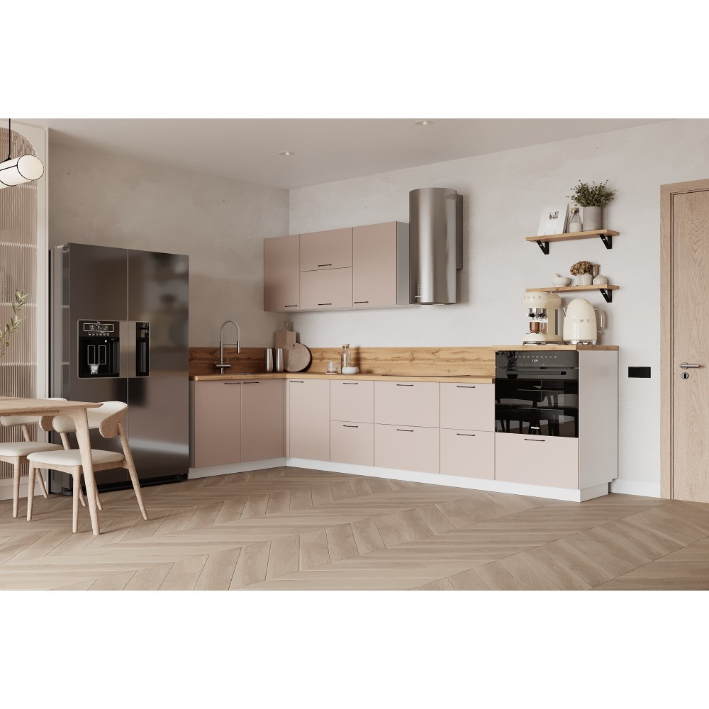 Кухня «Лизет» сочетает петербургскую элегантность и современную функциональность. Вдохновлённая эпохой Петра I и архитектурой Петербурга, она объединяет благородные цвета, тёплую древесную текстуру и лаконичные линии — для создания уютной и гармоничной кухни.