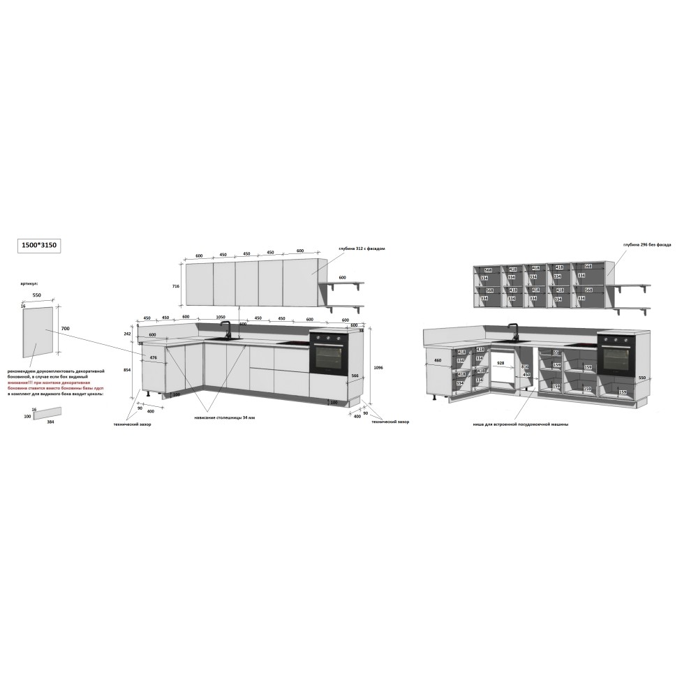 — Цельная столешница: без стыков и зазоров — больше гигиеничности и удобства в уборке.