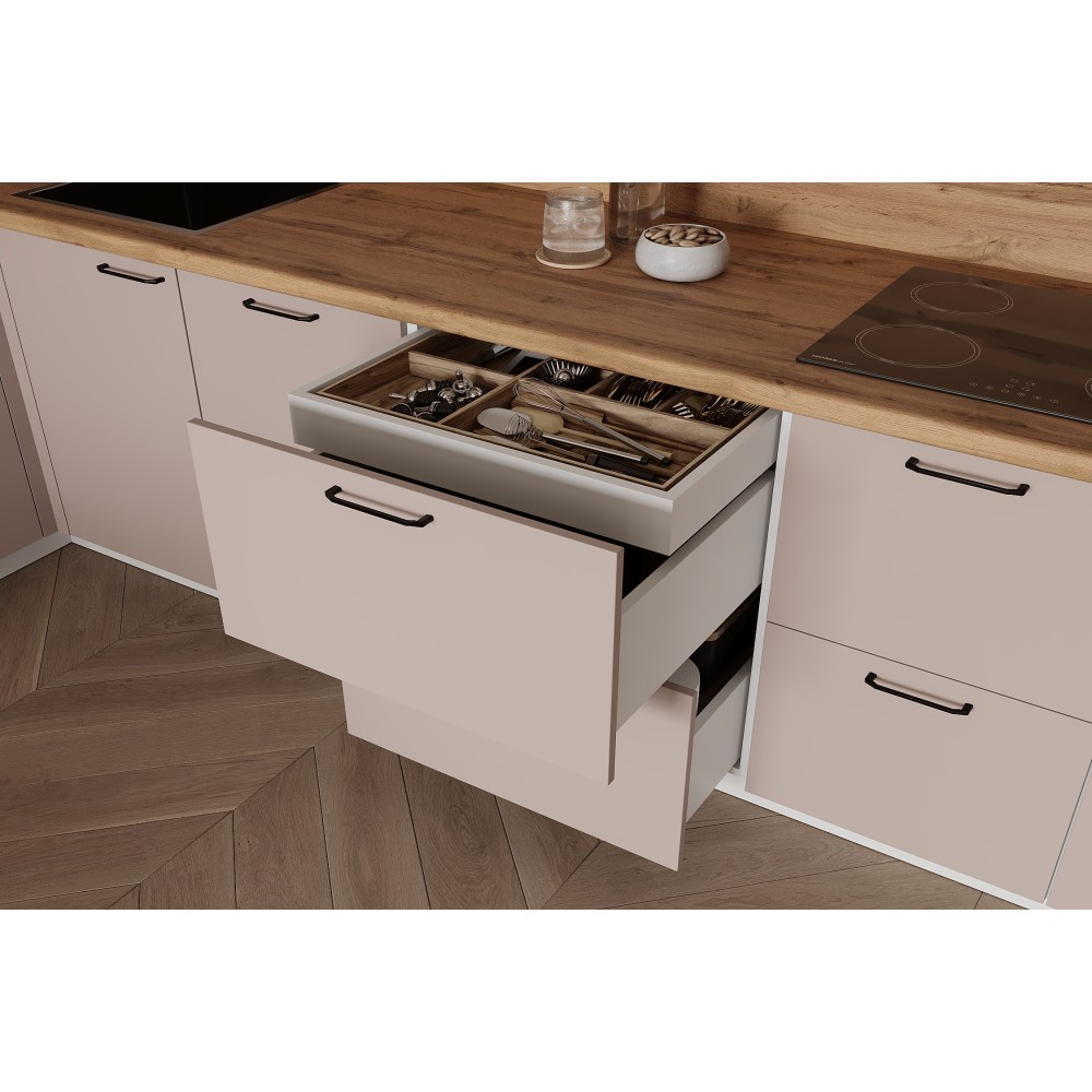 Кухня «Лизет» сочетает петербургскую элегантность и современную функциональность. Вдохновлённая эпохой Петра I и архитектурой Петербурга, она объединяет благородные цвета, тёплую древесную текстуру и лаконичные линии — для создания уютной и гармоничной кухни.