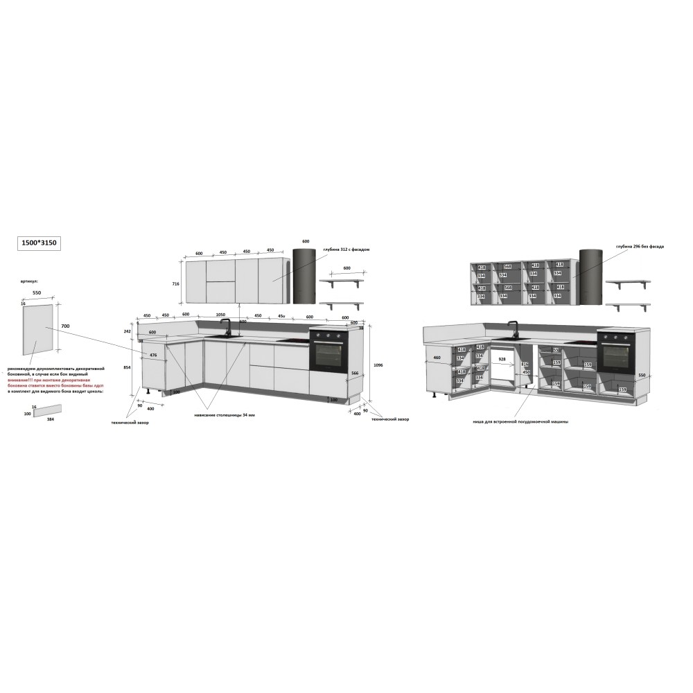 — Цельная столешница: без стыков и зазоров — больше гигиеничности и удобства в уборке.