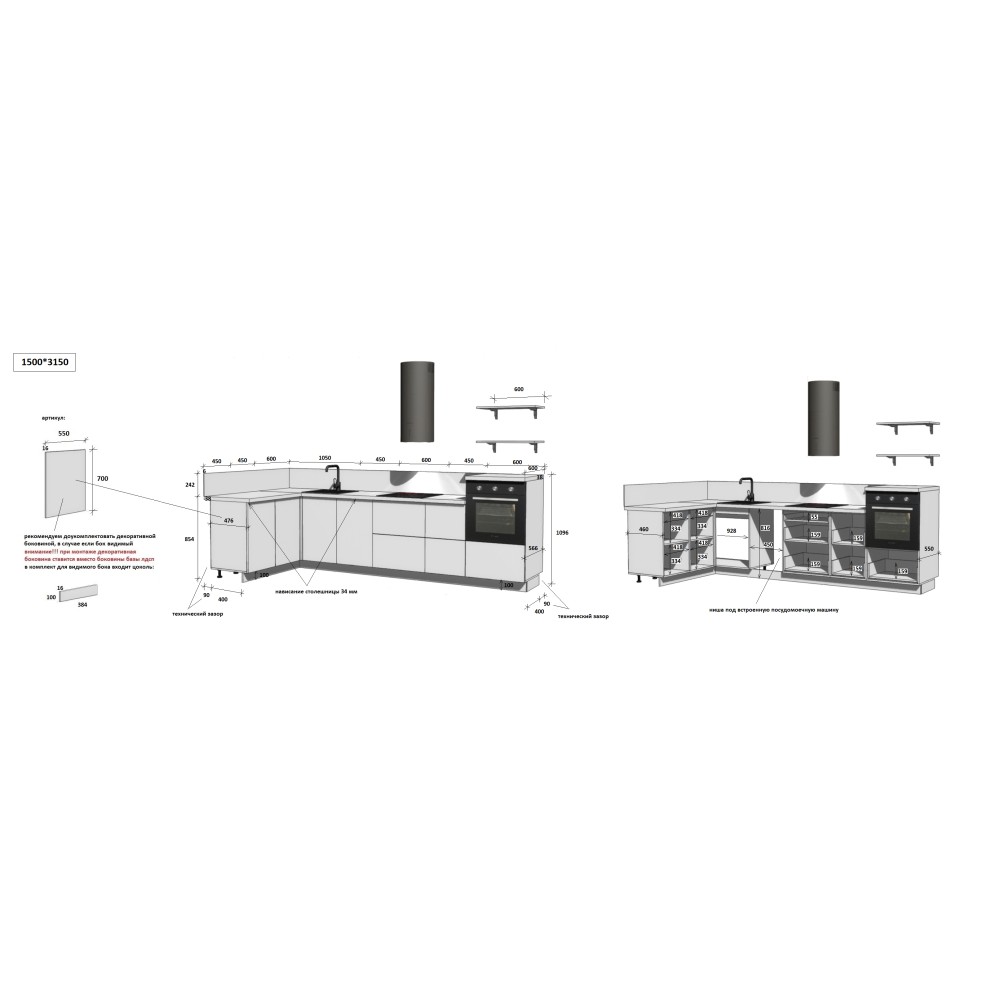 — Цельная столешница: без стыков и зазоров — больше гигиеничности и удобства в уборке.