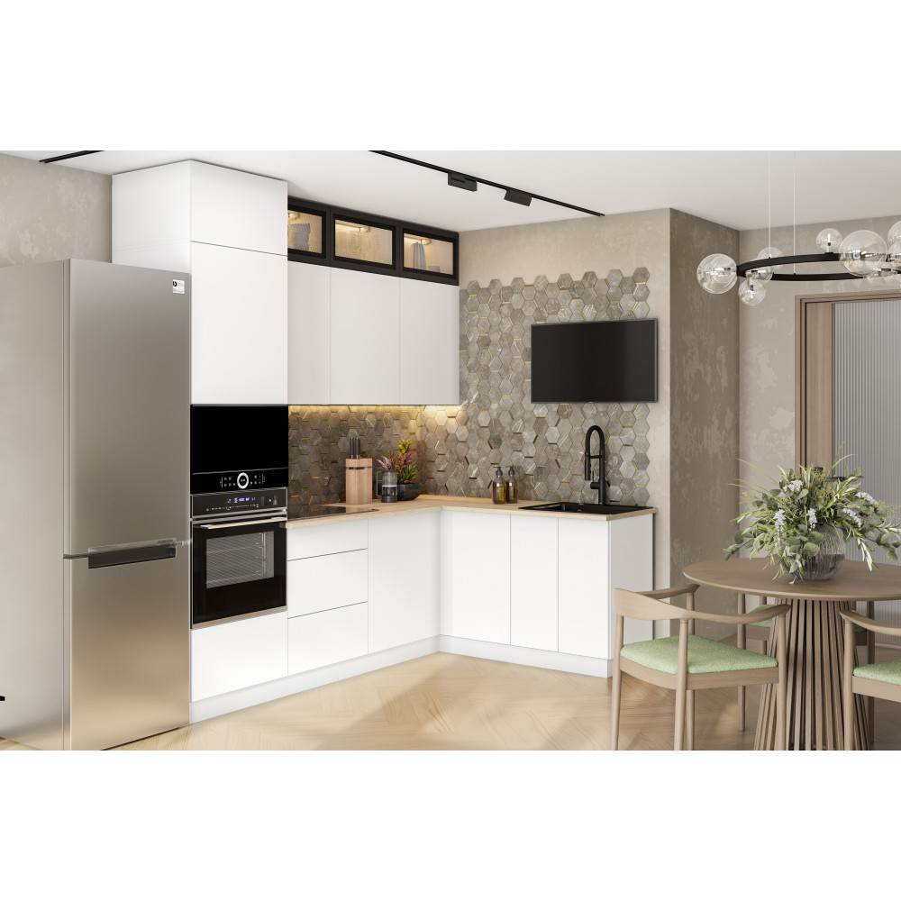 Также учтите, что в состав кухонного гарнитура входит фальшпанель толщиной 16 мм, поэтому длину столешницы следует увеличить на 5 см при заказе.