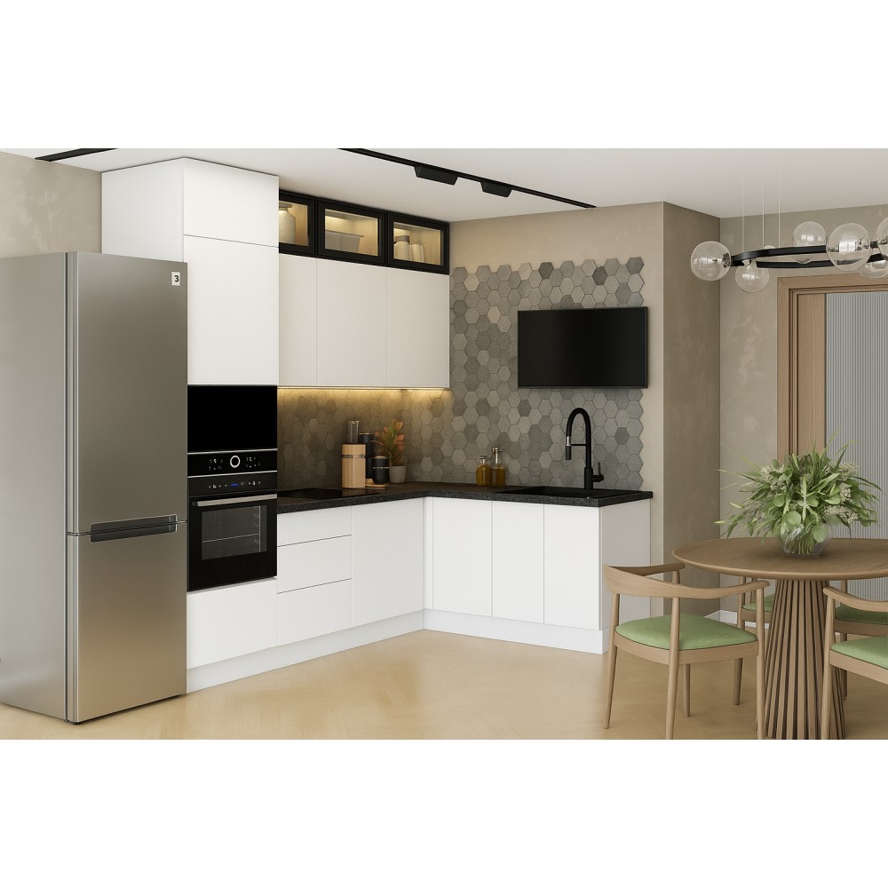 Готовая кухня Вектор - компактное и функциональное решение для вашего дома. Кухонный гарнитур сочетает в себе современный минимализм, эргономичность и надежность.