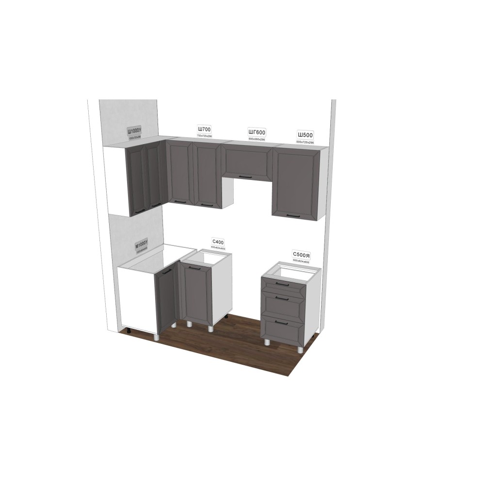 Столешница, мойка, смеситель, цоколь, стеновая панель и ручки приобретаются отдельно.
