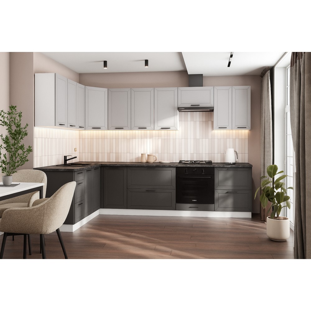 Готовая кухня Вектор - компактное и функциональное решение для вашего дома. Кухонный гарнитур сочетает в себе современный минимализм, эргономичность и надежность.