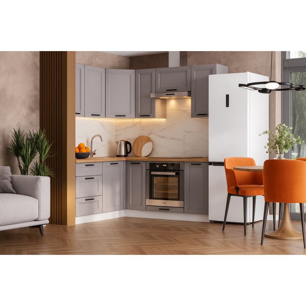 Готовая кухня Вектор - компактное и функциональное решение для вашего дома. Кухонный гарнитур сочетает в себе современный минимализм, эргономичность и надежность.