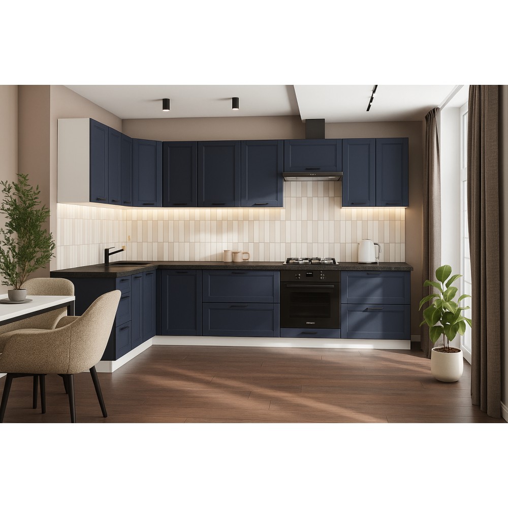 Готовая кухня Вектор - компактное и функциональное решение для вашего дома. Кухонный гарнитур сочетает в себе современный минимализм, эргономичность и надежность.
