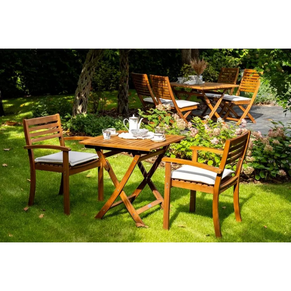 Стул из акации KARO высокий, арт.52202: размеры 62,5x67x106 см – 2 шт,Стол из акации KARO 70 см складной, арт.52210: размеры 70x70x72 cм – 1 шт.