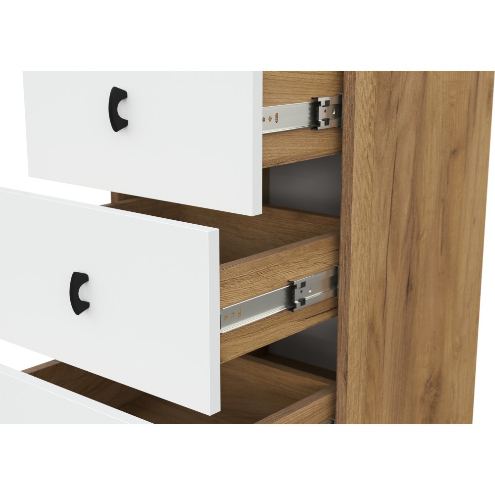 Комод из модульной серии Байкал дополнит современный интерьер комнаты. Вместительные ящики позволят организовать место хранения белья и одежды, аксессуаров и других нужных предметов.
