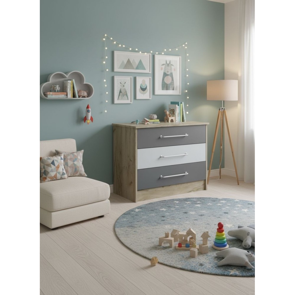 Комод из модульной серии Колибри дополнит современный интерьер комнаты. Вместительные ящики позволят организовать место хранения белья и одежды, аксессуаров и других нужных предметов.