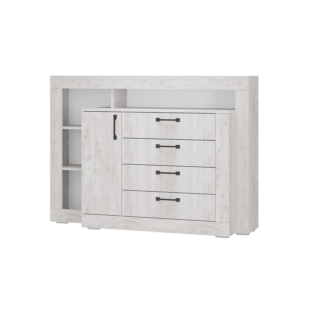 Комод многофункциональный Прима КМ-17 - удобная система хранения для одежды, постельных принадлежностей или других хозяйственных аксессуаров. Все необходимые вещи можно расположить на полках за распашной створкой, а также в трёх вместительных выдвижных ящиках на роликовых направляющих, которые обеспечивают легкую и бесшумную эксплуатацию модели. В открытых нишах можно разместить игрушки, книги, наборы для творчества и много других вещей.
