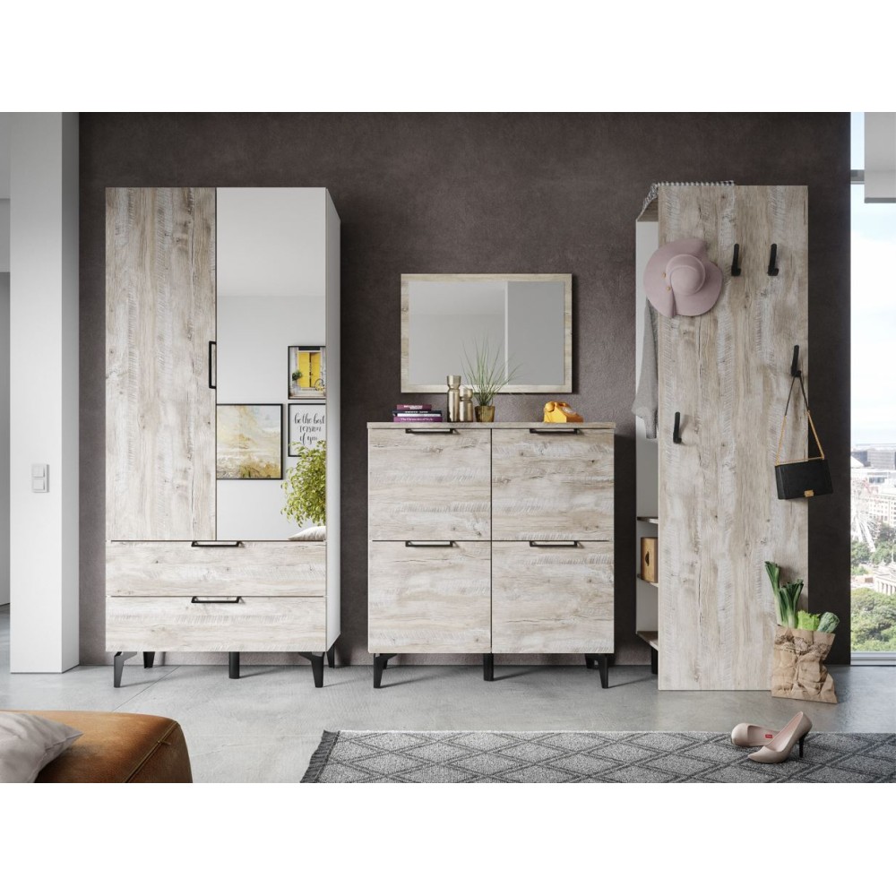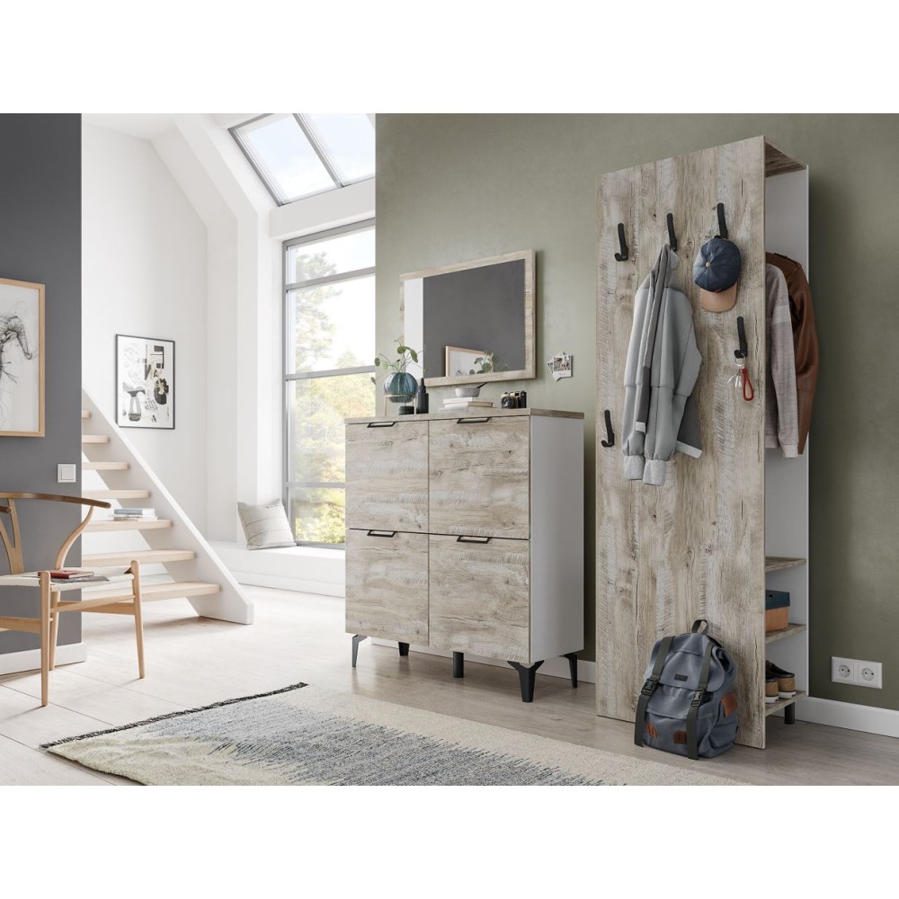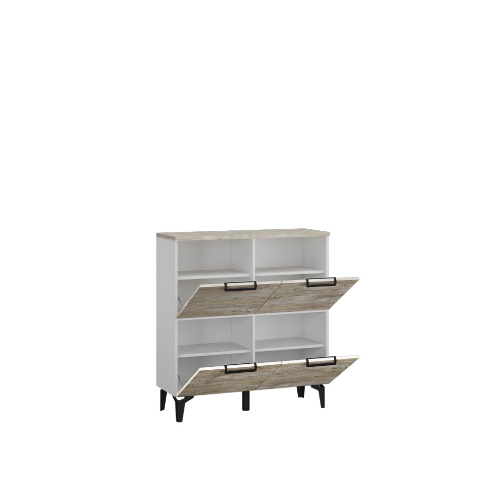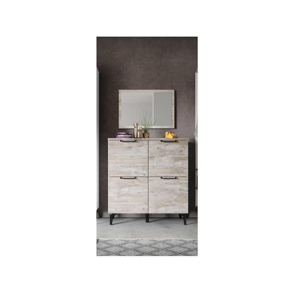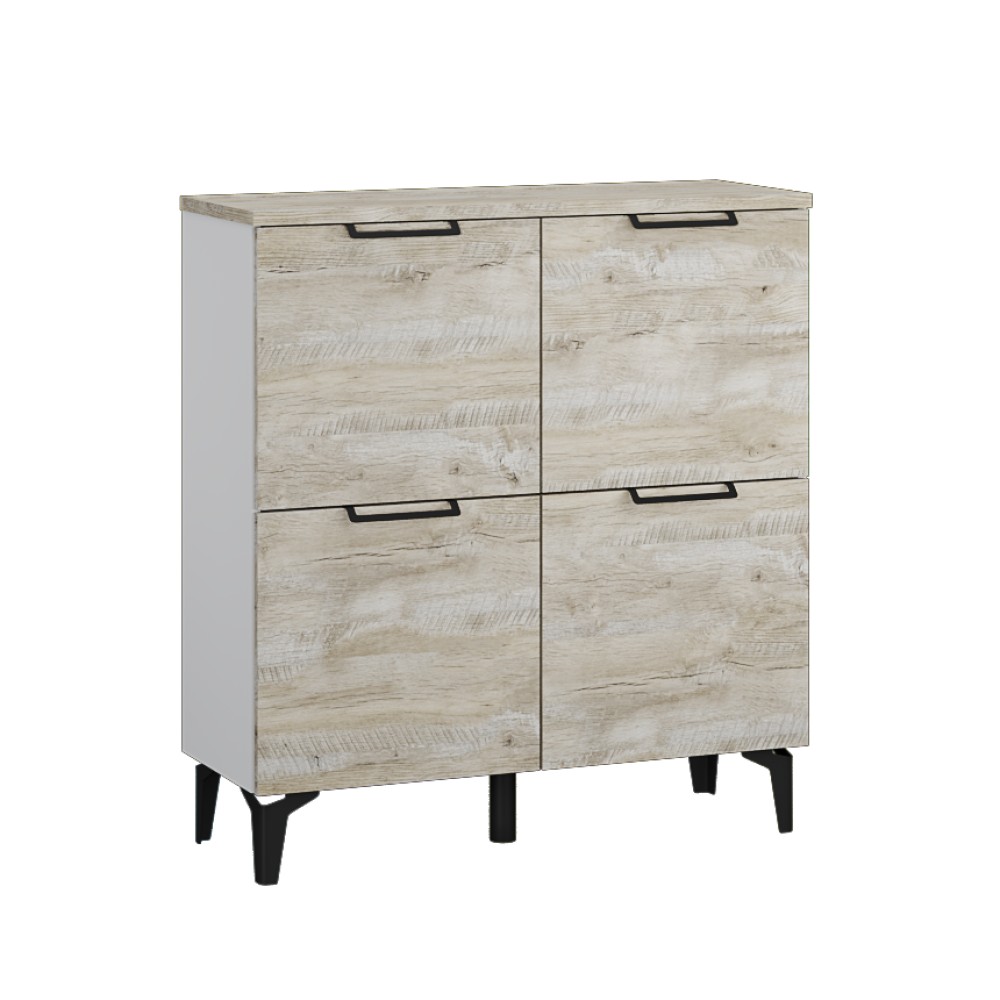 Организовать грамотное хранение сложенных вещей и обуви в малогабаритной прихожей становится возможным благодаря комоду из коллекции Чикаго. Модуль выполнен в современном стиле в декоре дуб юкон/белый, тонкие черные ручки и ножки добавляют ему вкуса. Откидная конструкция дверей дарит Вам возможность сэкономить пространство перед комодом, тем самым Вы можете разместить его даже в узком помещении.