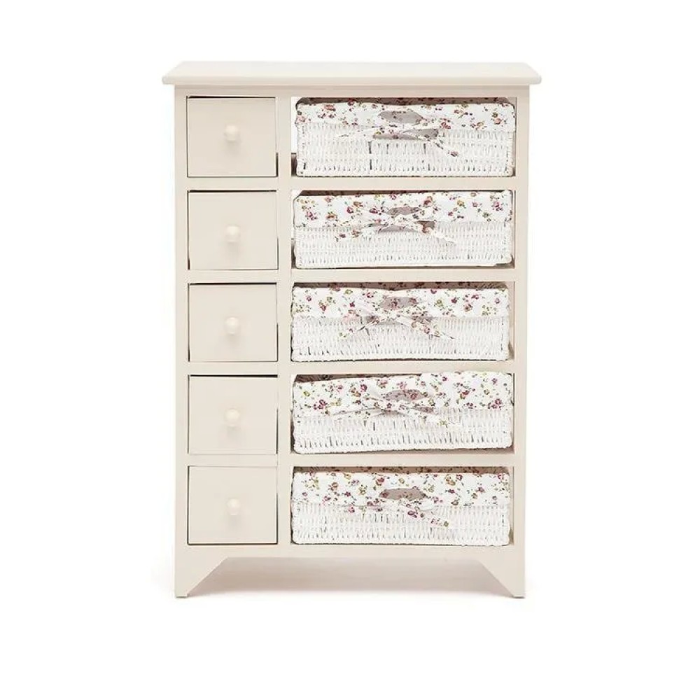 Оригинальный комод Secret de Maison CABAS из французской коллекции SAINT-TROPEZ, выполненный в стиле прованс, добавит уюта и комфорта в ваш интерьер. Качественная ручная работа и сочетание натуральных материалов выгодно выделяют комод в интерьере. Каркас из массива павловнии, плетеные корзины из бумажного жгута и съемные тканевые чехлы с цветочным принтом создают неповторимый облик изделия. Пять небольших выдвижных ящиков удобны для хранения мелочей. Легкие плетеные корзины ручной работы можно использовать отдельно от комода, поставить в любой части комнаты и переместить при необходимости. Комод выполнен из массива павловнии, легкого и одновременно прочного материала, с хорошими водоотталкивающими свойствами, благодаря чему изделие долговечно, надежно и не требует специального ухода. Модель отлично сочетается с мебелью из коллекции SAINT-TROPEZ, поставляется в собранном виде.