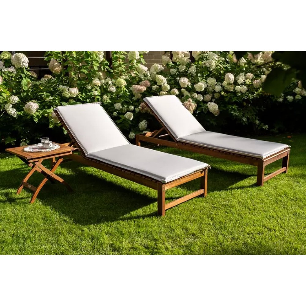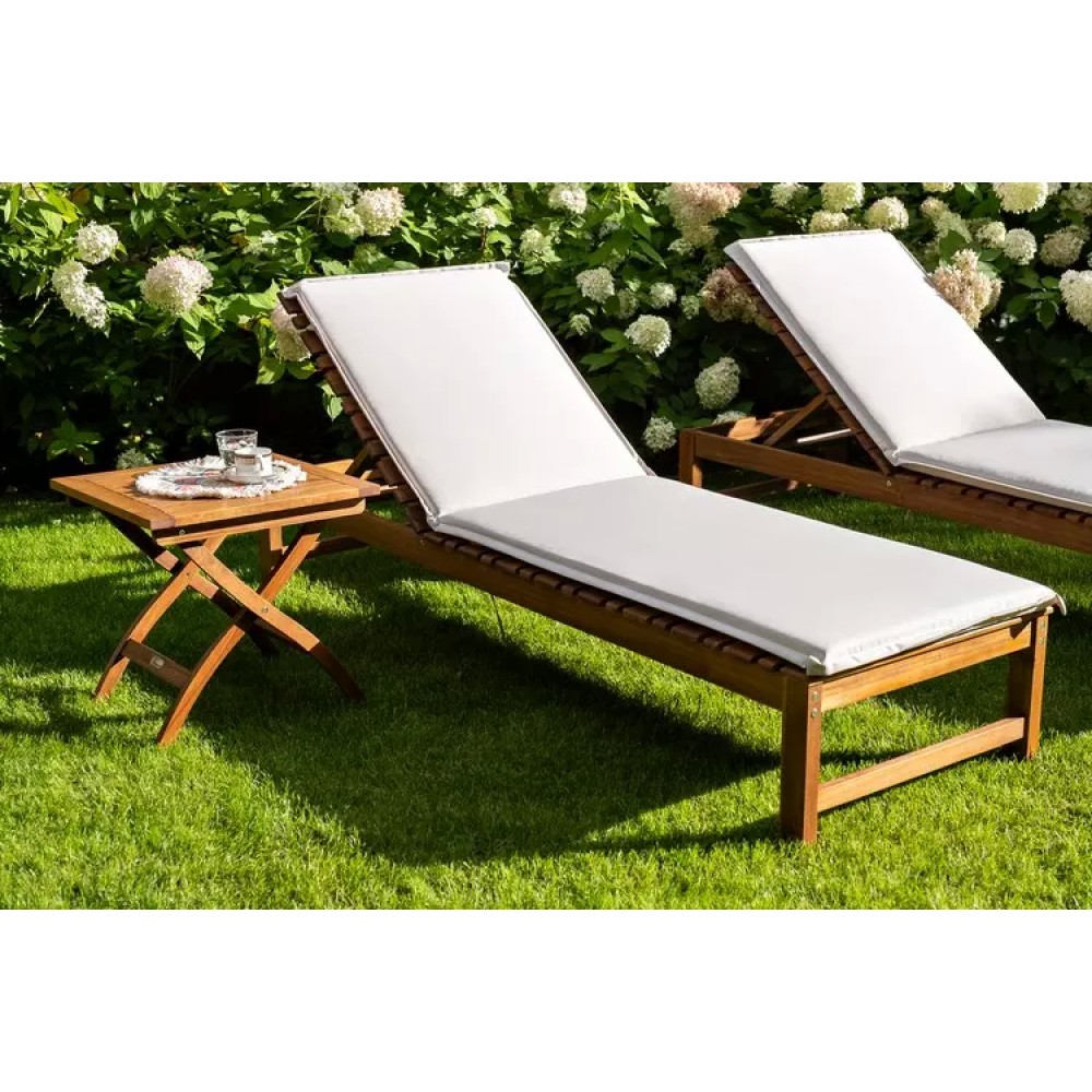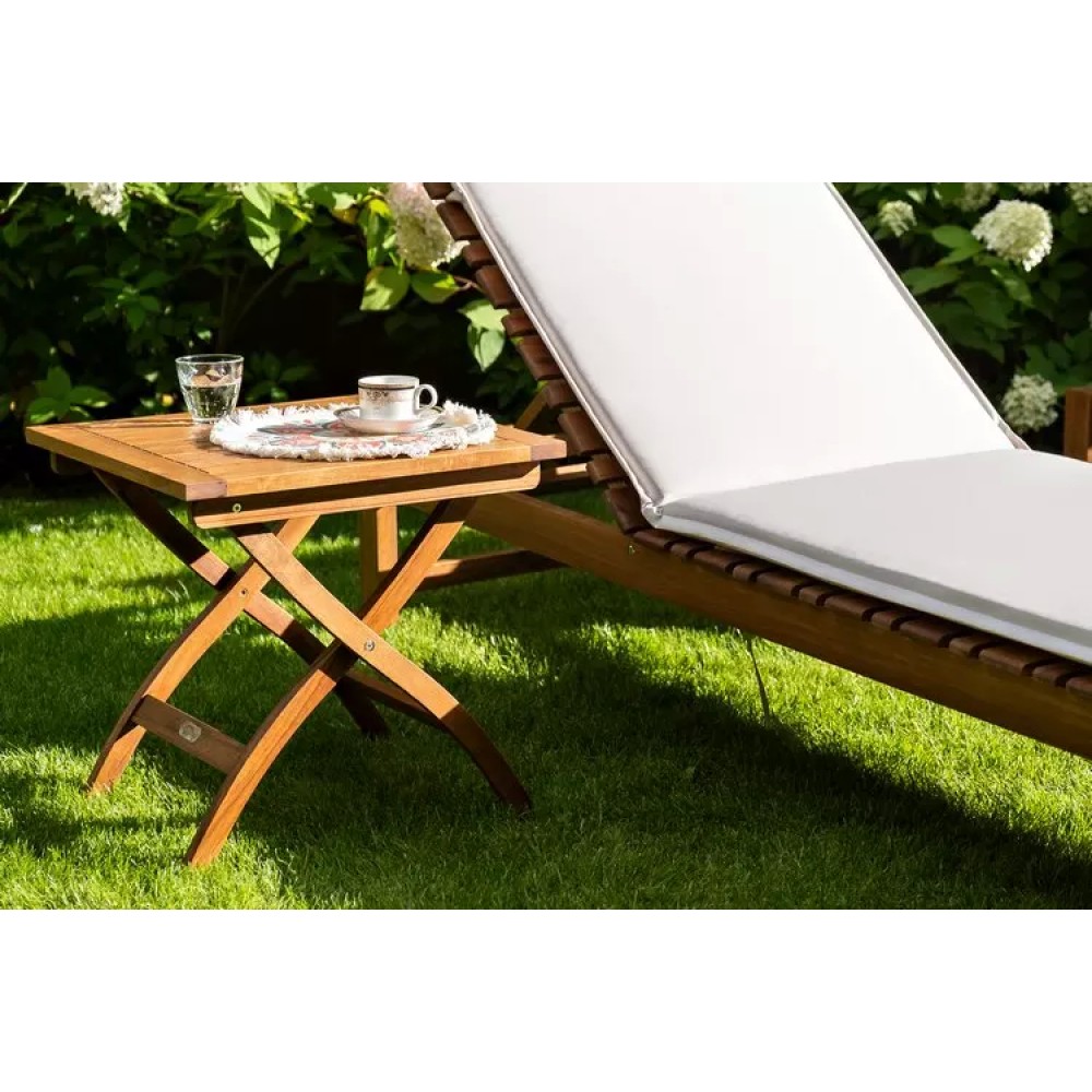 Шезлонг из акации KARO, арт.52216: размеры 200x65xh90/40см – 2 шт,Кофейный стол из акации KARO 50 см складной, арт.52211: размеры 50x50x50cм – 1 шт.
