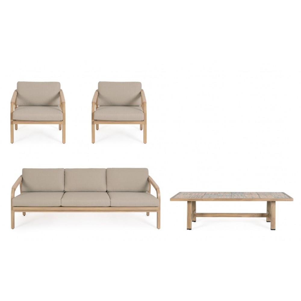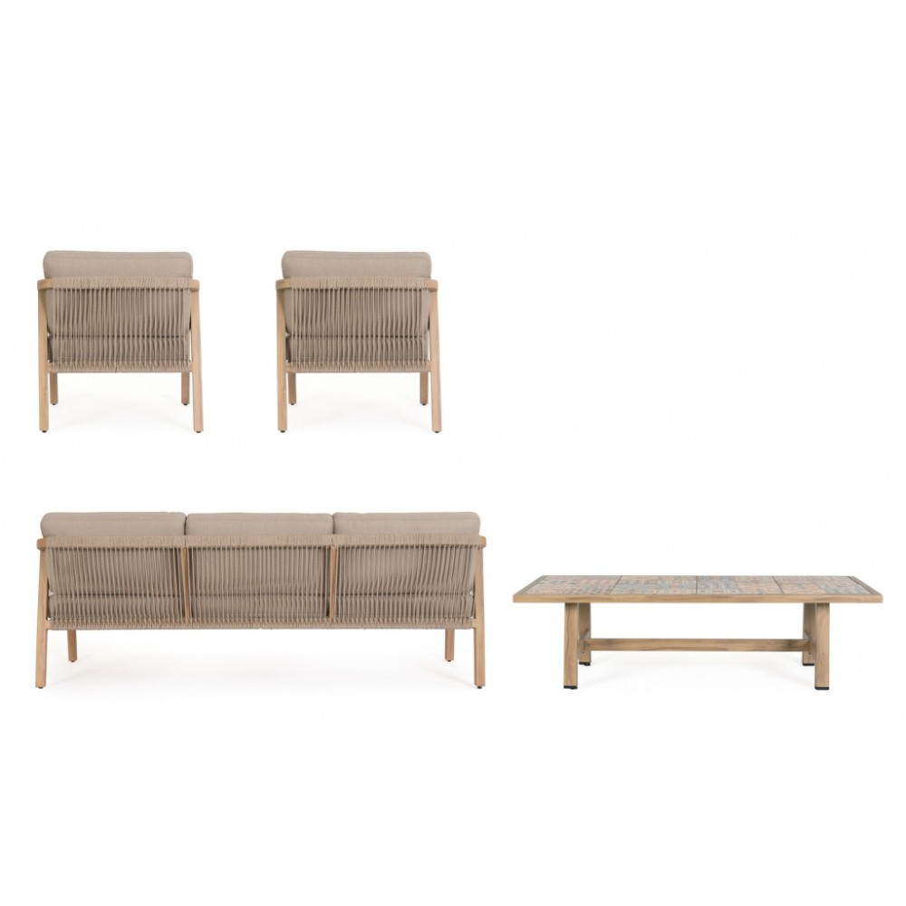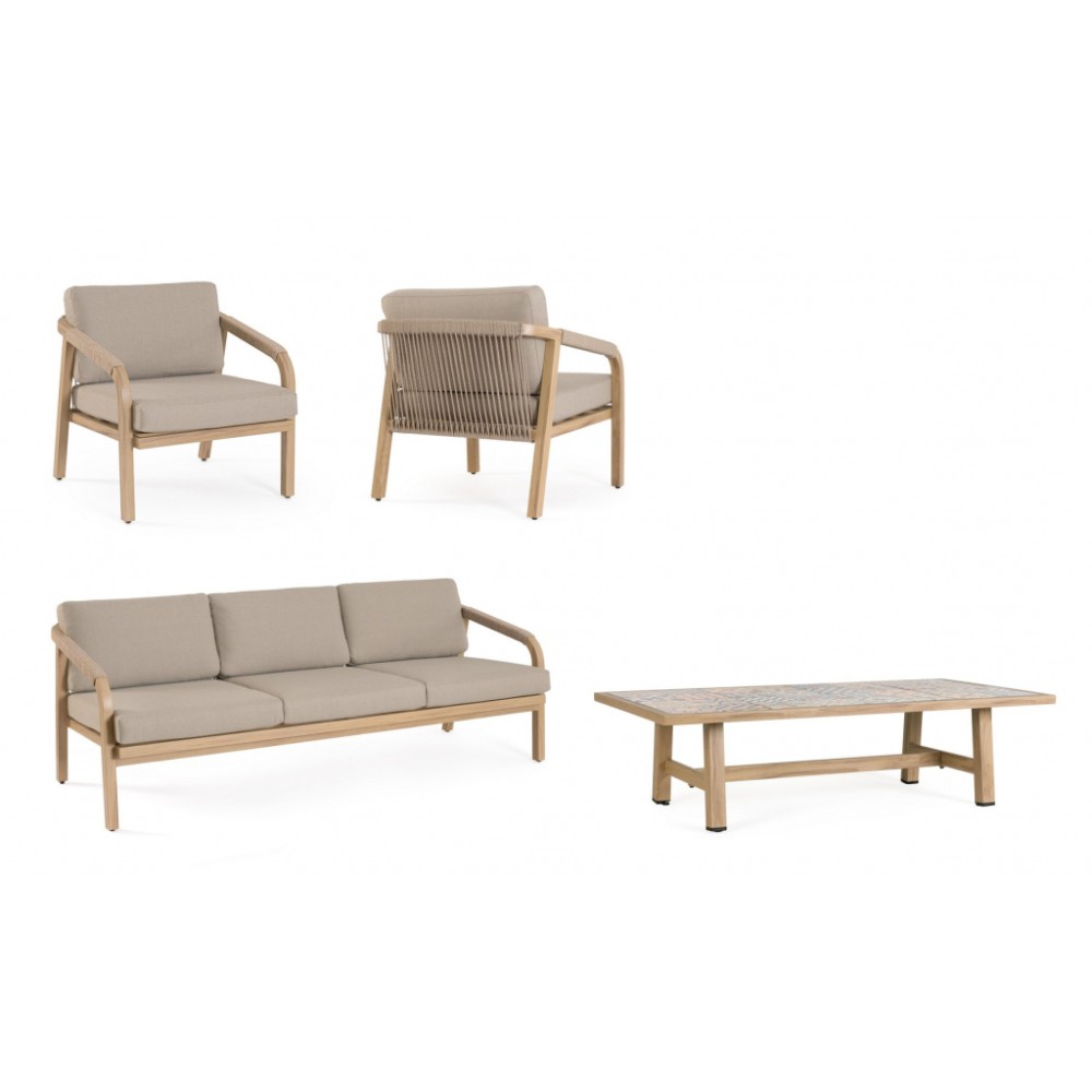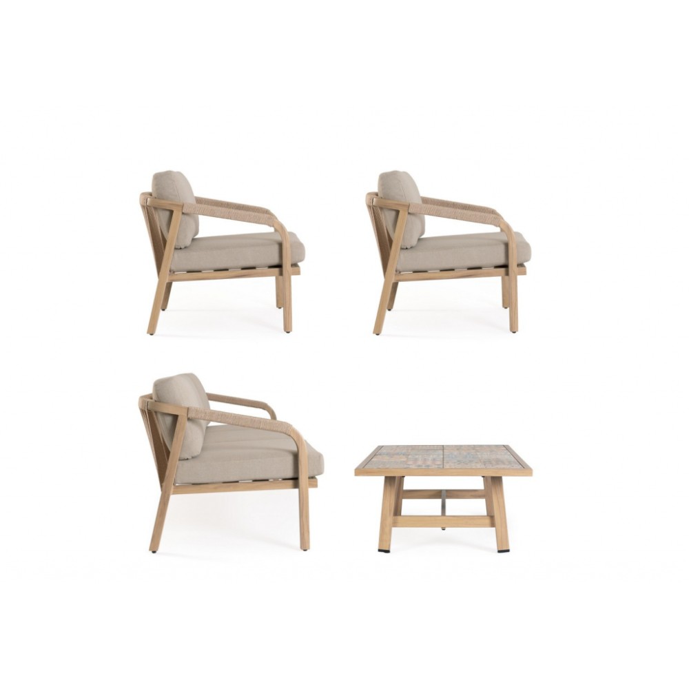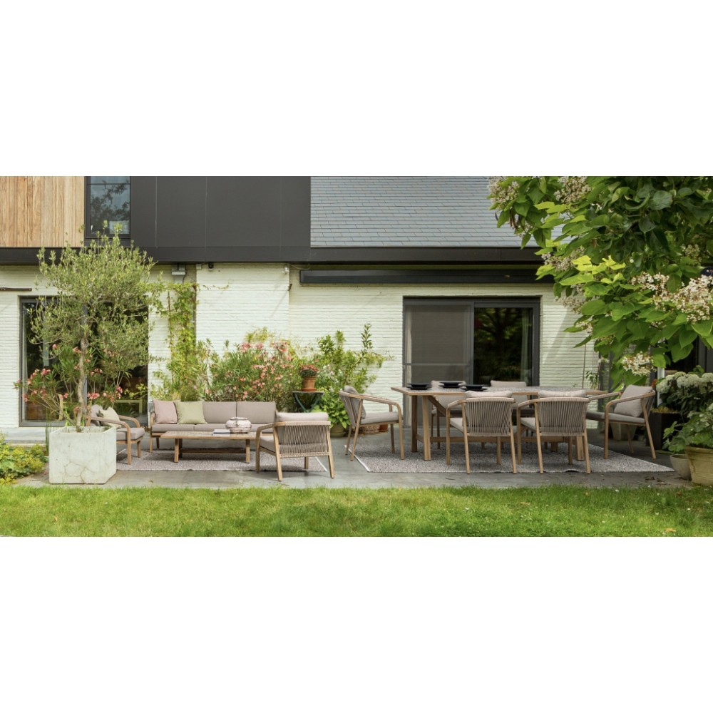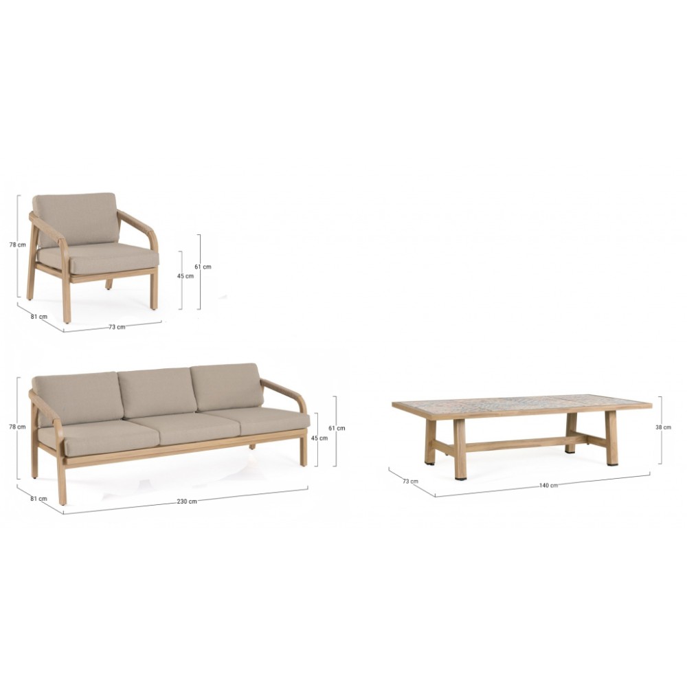 Минимальный заказ данной модели 1 шт. Данное изделие предназначено только для домашнего использования. Лаунж комплект мебели Kalimera- это современное и функциональное решение для создания уютной зоны отдыха на террасе, в саду или на патио. Дизайн сочетает в себе натуральные оттенки и современные формы, идеально вписывающиеся в любое пространство. Особенности: Каркас мебели выполнен из алюминия с порошковым покрытием (полиэстер) с отделкой под дерево. Плетение выполнено из роупа (полиэстер) Ø5 мм. Съемные чехлы подушек выполнены из олефиновой ткани (100% полипропилен). Высота сиденья: 450 мм, высота подлокотников: 610 мм, высота спинки без подушки: 690 мм. Столешница стола выполнена из глазурованной керамической плитки (Испания). Винты из нержавеющей стали. Изделие подлежит сборке. Состав комплекта: Трехместный диван с подушками, размер: 2030х810х780 мм - 1 шт. Кресло с подушками, размер: 730х810х780 мм - 1 шт. Журнальный столик, размер: 1400х730х380 мм - 1 шт. Открыть инструкцию по использованию и уходу.