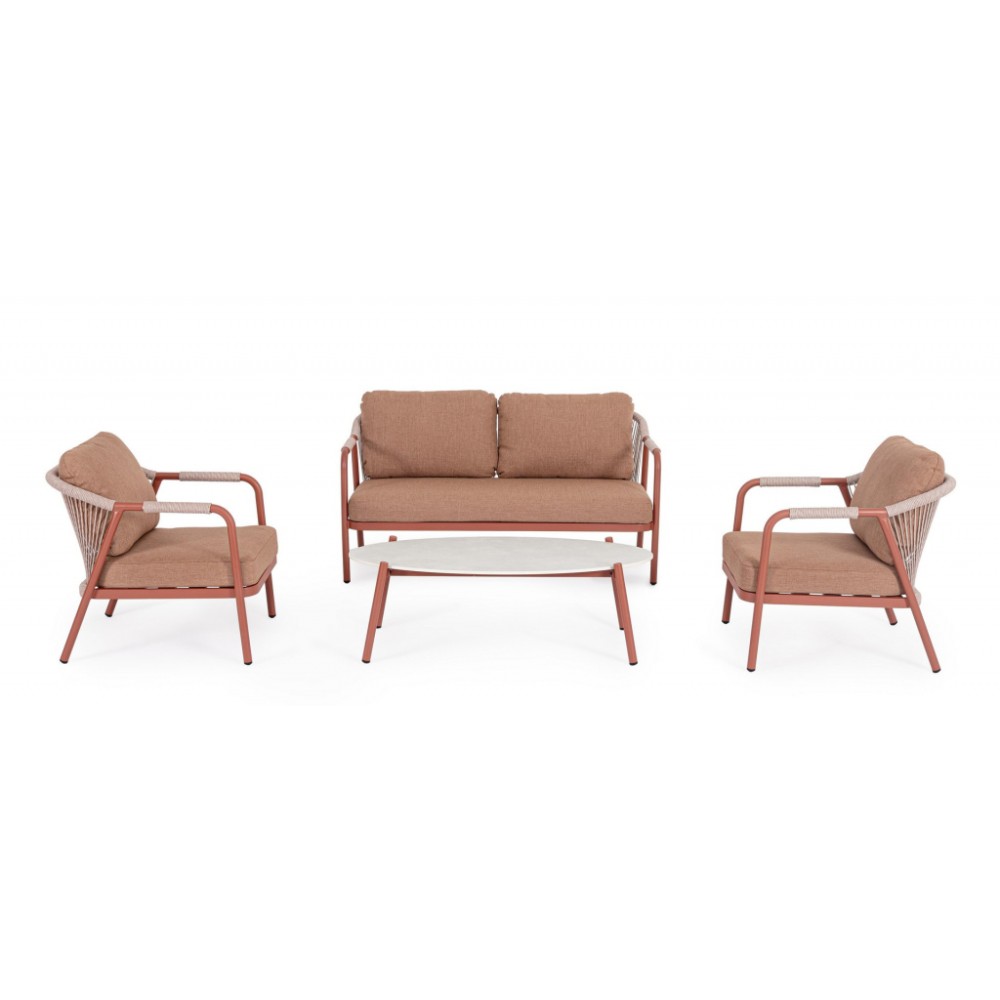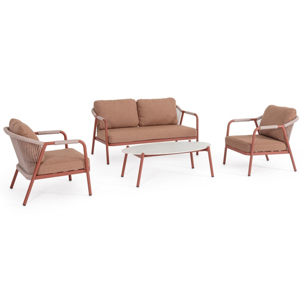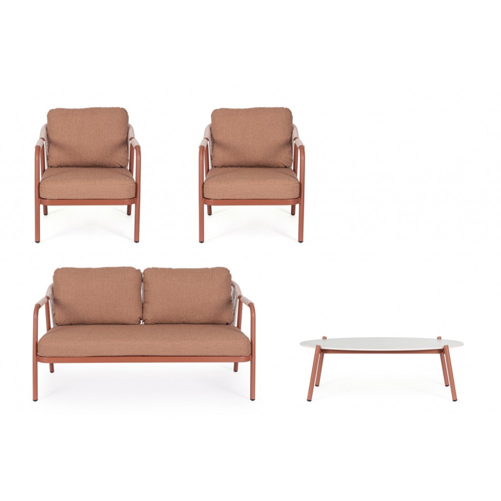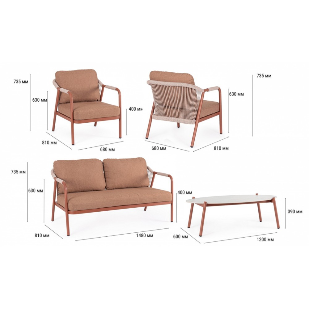 Минимальный заказ данной модели 1 шт. Изделия комплекта предназначены только для домашнего использования. Miravet - комплект лаунж мебели из высококачественных материалов. Изысканная конструкция из алюминия с высокопрочным полиэстерным порошковым покрытием гарантирует исключительную прочность и устойчивость к непогоде. Плетеные элементы из роупа, придают комплекту неповторимый шарм и легкость. А благодаря лаконичному и элегантному дизайну он с легкостью вписывается в разнообразные стили площадок, придавая им современный, но в то же время теплый характер. Особенности: Каркас мебели выполнен из алюминия с порошковым покрытием. Спинка дивана и кресел выполнены плетением из олефинового каната (роуп). Высота сиденья: 400 мм, высота подлокотников: 630 мм. Подушки на сиденьях и спинках со съемными чехлами из олефина (100% полипропилен). Столешница выполнена из спеченного камня (толщина 7 мм). Винты из нержавеющей стали. Состав комплекта: Диван двухместный с подушками, размер: 1480х810х735 мм - 1 шт. Кресло металлическое с подушками, размер: 680х810х735 мм - 2 шт. Столик журнальный металлический, размер: 1200х600х390 мм - 1 шт. Открыть инструкцию по использованию и уходу.