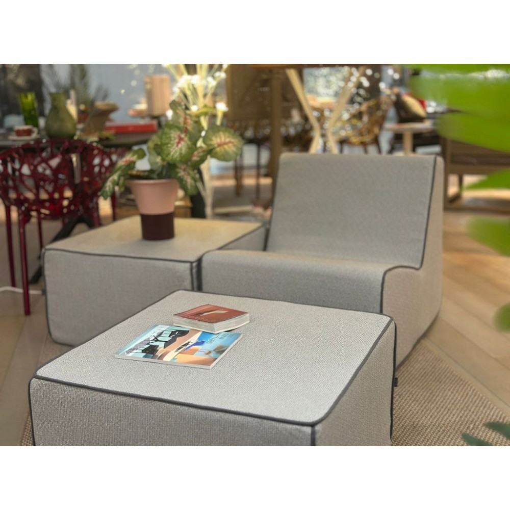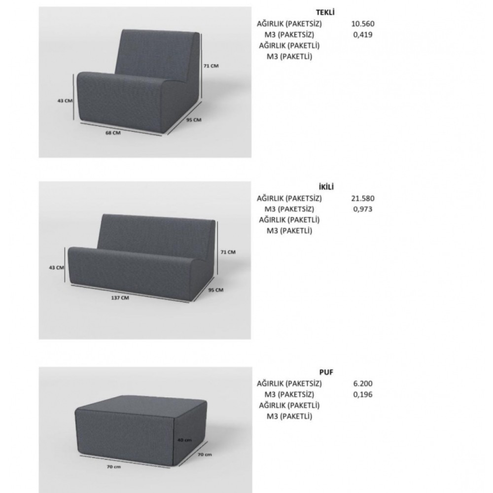 Комплект лаунж мебели Montenegro состоит из дивана, кресел и пуфа, который можно использовать как журнальный столик. Состав комплекта: Диван, размер: 1370х950х710 мм, высота сиденья: 430 мм - 1 шт. Кресло, размер: 680х950х710 мм, высота сиденья: 430 мм - 2 шт. Пуф-столик, размер: 700х700х400 мм - 1 шт. Особенности: Чехол на молнии выполнен из водоотталкивающей ткани, цвет: Chain 0201. Наполнение - мягкая пена плотностью 36 кг/м³. Открыть инструкцию по уходу.