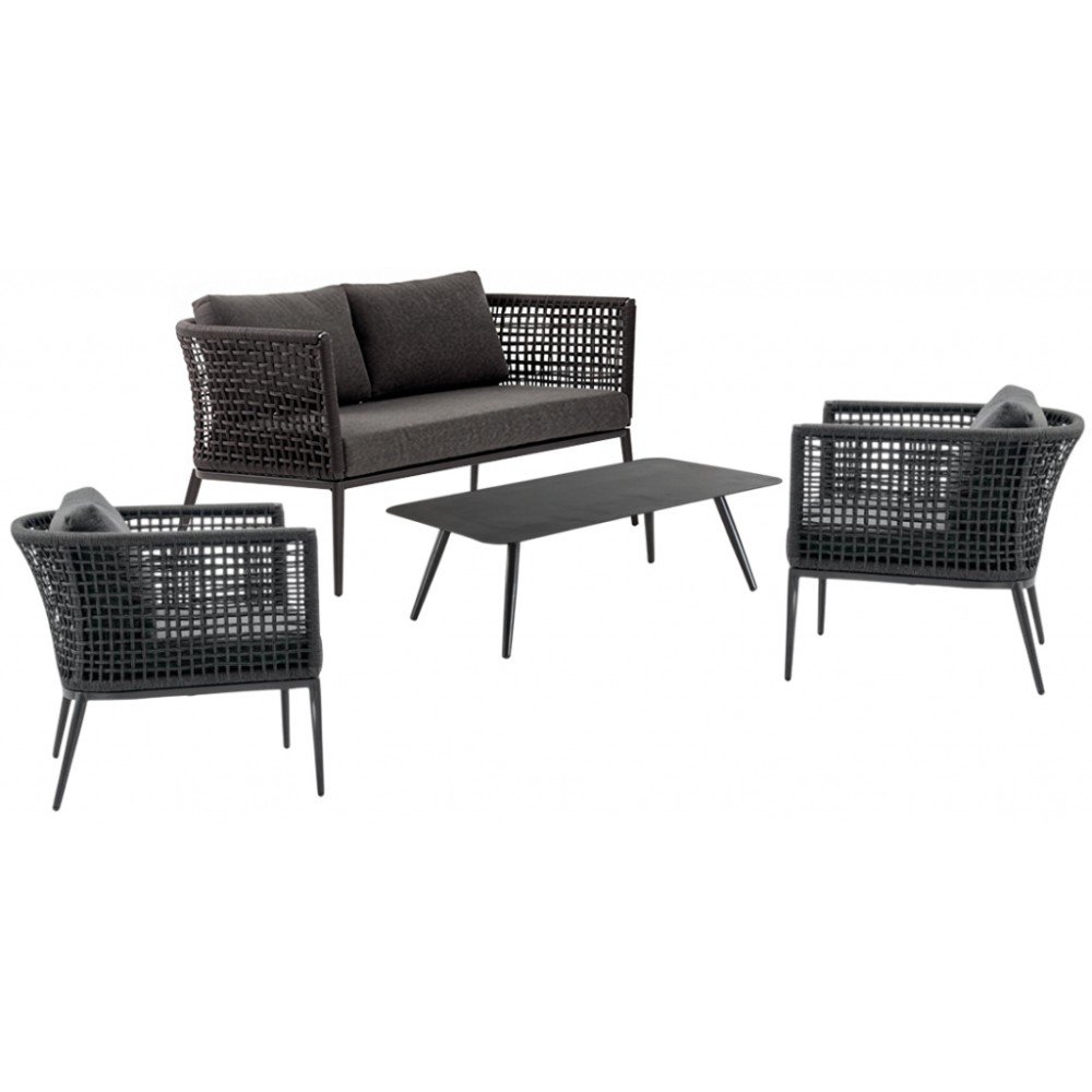 Данная продукция возится только под заказ с фабрики по предоплате. Обращаем Ваше внимание, что на фото указана другая модель журнального столика. Комплект Cuba состоит из двухместного дивана, двух кресел и журнального столика, каркас которых выполнен из алюминия с порошковым покрытием. Кресла и диван имеют низкую спинку, которая создает одно целое с подлокотниками благодаря канатному плетению из полиэстера Ø6мм. Объемные и мягкие подушки, созданные для максимизации комфорта, выполнены из олефина, устойчивого к пятнам и ультрафиолетовому излучению. Коллекция Cuba идеально подходит для тех, кто хочет произвести впечатление с помощью дизайнерской мебели в интерьере и на открытых площадках. Состав комплекта: Диван с подушками, размер: 1350х750х740 мм, высота сиденья: 450 мм, вес: 18 кг - 1 шт. Кресло с подушками, размер: 790х750х740 мм, высота сиденья: 450 мм, вес: 11 кг - 2 шт. Журнальный стол Jolly, размер: 1100х700х350мм, вес: 9 кг - 1 шт.