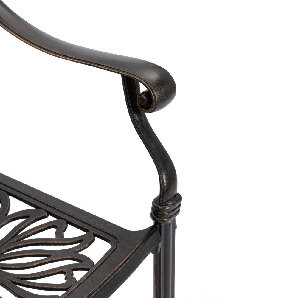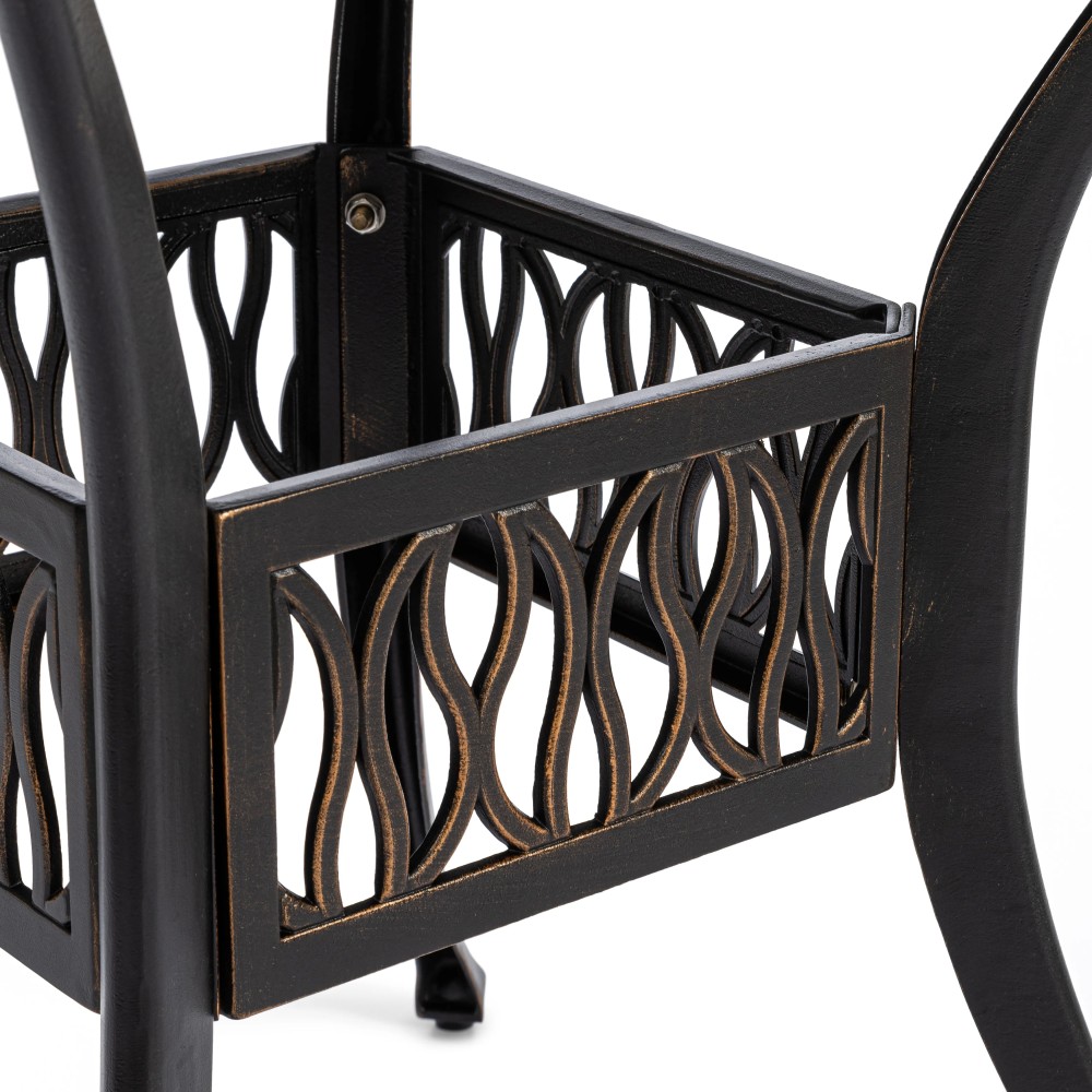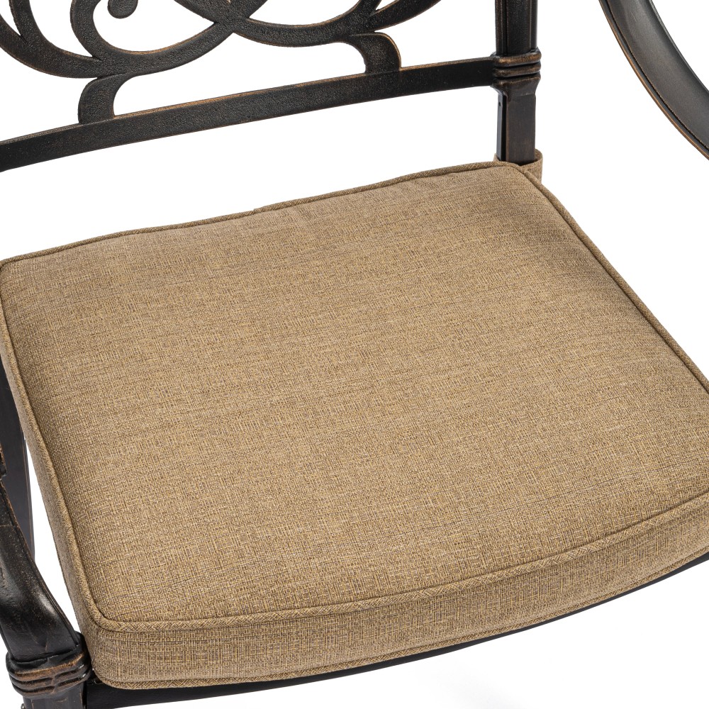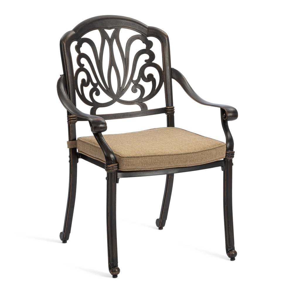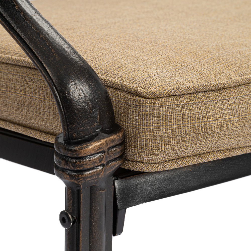 Представляем комплект кованой мебели Quartet/Квартет — идеальное решение для создания уютной и стильной зоны отдыха на даче, в саду, на террасе или в летнем кафе. Изящный ансамбль включает стол и четыре кресла с мягкими подушками, обеспечивая максимальный комфорт для всей семьи или компании гостей. Изысканные кованые узоры, выполненные с особым мастерством, придают комплекту неповторимый шарм и визуальную лёгкость. Декоративная художественная ковка гармонично вписывается в любой ландшафтный дизайн — от классического до прованского стиля. Каркас изготовлен из прочного стального сплава с защитным порошковым напылением, что гарантирует высокую устойчивость к коррозии, механическим нагрузкам и длительный срок службы. Четыре удобных кресла дополнены мягкими подушками. Подушки оснащены специальными креплениями на липучках, которые надежно фиксируют их на сиденьях и предотвращают смещение во время использования. При необходимости подушки легко снимаются для чистки или хранения. Стол отличается устойчивой конструкцией и функциональностью. В центре столешницы предусмотрено специальное отверстие для установки садового зонта, что позволяет создать комфортную тень в солнечную погоду. Такое решение делает комплект особенно практичным для использования на открытом воздухе. Комплект садовой мебели Quartet/Квартет устойчив к любым погодным условиям, выдерживает значительные нагрузки и не требует сложного ухода. Он надолго сохраняет презентабельный внешний вид даже при активной эксплуатации. Кованая мебель Quartet/Квартет — это гармоничное сочетание эстетики, надежности и комфорта. Отличный выбор для тех, кто ищет качественную и стильную садовую мебель для загородного дома или коммерческого пространства. Комплект поставляется в разобранном виде, что обеспечивает удобство транспортировки и сборки.