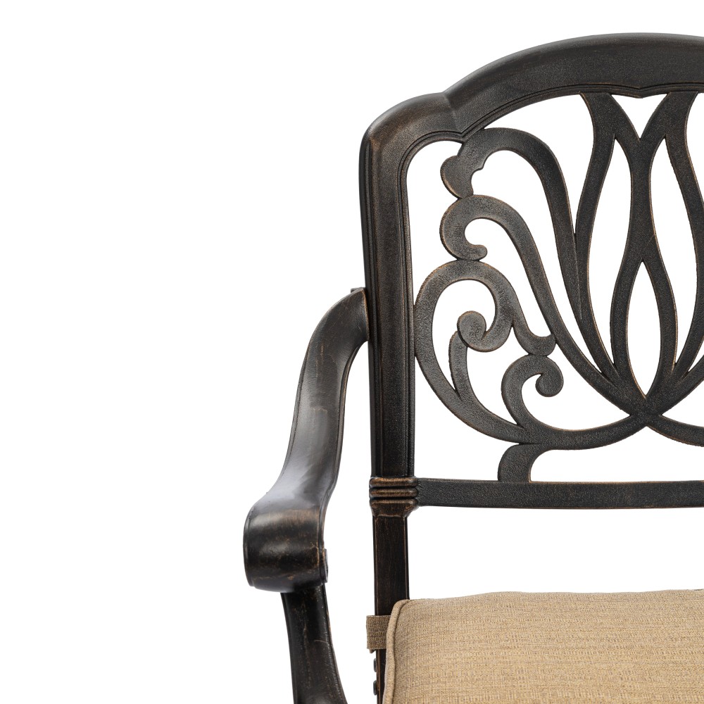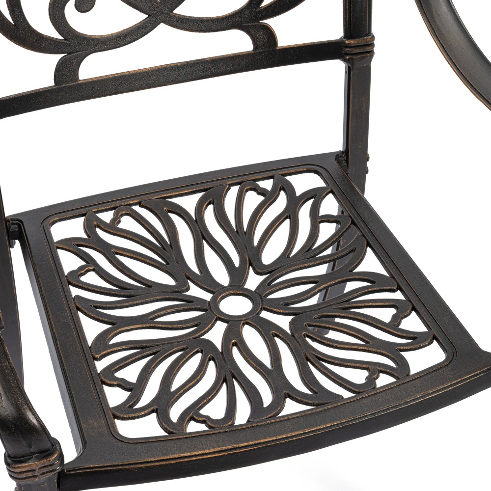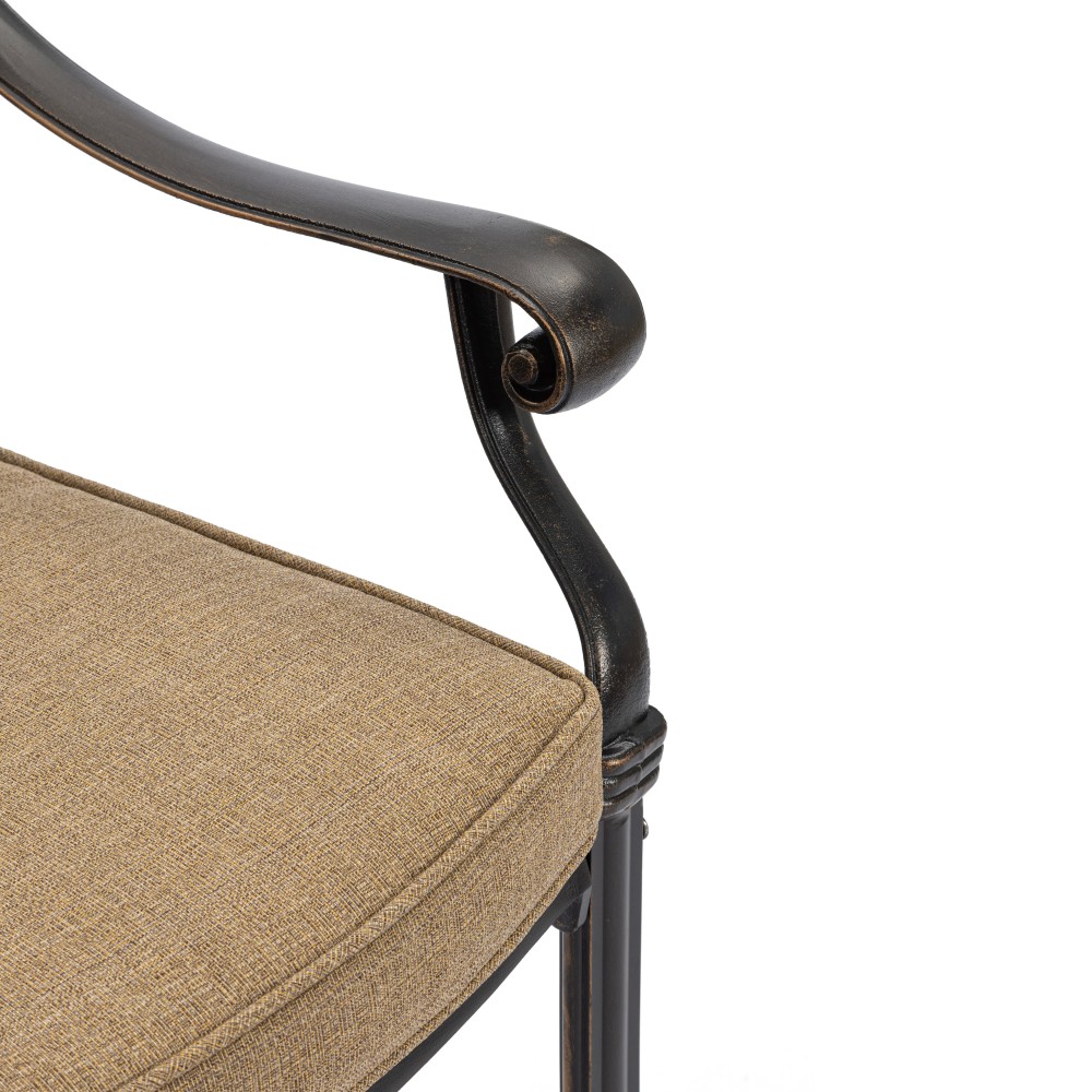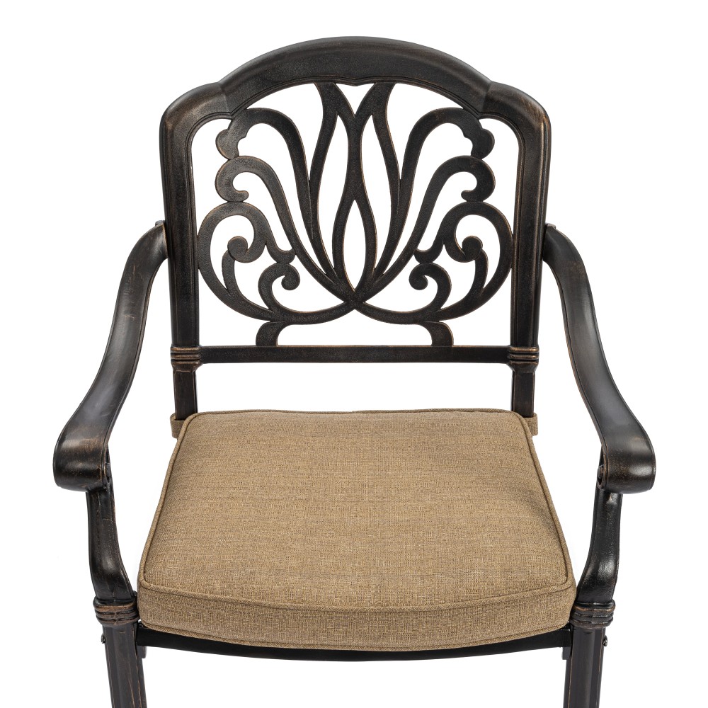 Представляем комплект кованой мебели Quartet/Квартет — идеальное решение для создания уютной и стильной зоны отдыха на даче, в саду, на террасе или в летнем кафе. Изящный ансамбль включает стол и четыре кресла с мягкими подушками, обеспечивая максимальный комфорт для всей семьи или компании гостей. Изысканные кованые узоры, выполненные с особым мастерством, придают комплекту неповторимый шарм и визуальную лёгкость. Декоративная художественная ковка гармонично вписывается в любой ландшафтный дизайн — от классического до прованского стиля. Каркас изготовлен из прочного стального сплава с защитным порошковым напылением, что гарантирует высокую устойчивость к коррозии, механическим нагрузкам и длительный срок службы. Четыре удобных кресла дополнены мягкими подушками. Подушки оснащены специальными креплениями на липучках, которые надежно фиксируют их на сиденьях и предотвращают смещение во время использования. При необходимости подушки легко снимаются для чистки или хранения. Стол отличается устойчивой конструкцией и функциональностью. В центре столешницы предусмотрено специальное отверстие для установки садового зонта, что позволяет создать комфортную тень в солнечную погоду. Такое решение делает комплект особенно практичным для использования на открытом воздухе. Комплект садовой мебели Quartet/Квартет устойчив к любым погодным условиям, выдерживает значительные нагрузки и не требует сложного ухода. Он надолго сохраняет презентабельный внешний вид даже при активной эксплуатации. Кованая мебель Quartet/Квартет — это гармоничное сочетание эстетики, надежности и комфорта. Отличный выбор для тех, кто ищет качественную и стильную садовую мебель для загородного дома или коммерческого пространства. Комплект поставляется в разобранном виде, что обеспечивает удобство транспортировки и сборки.