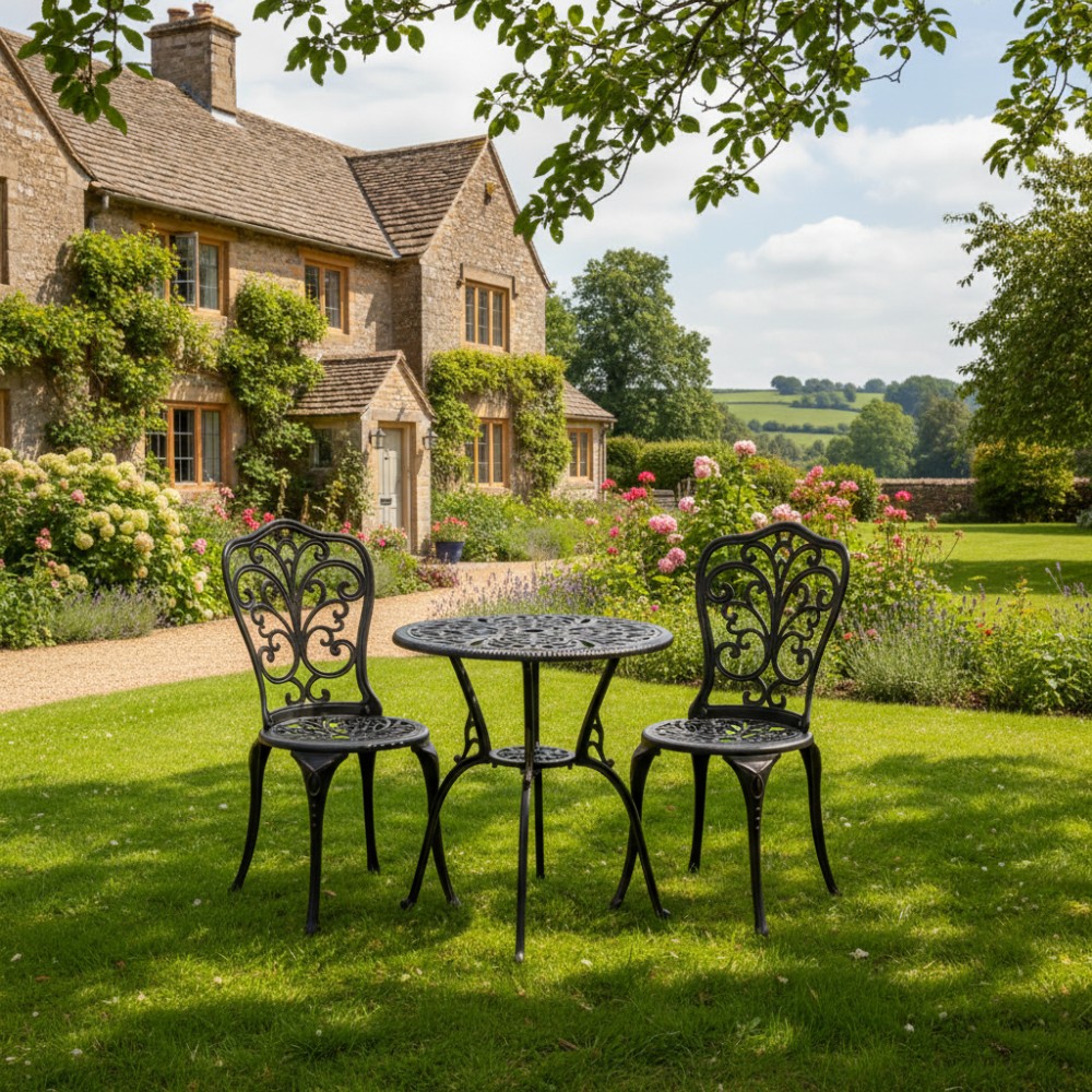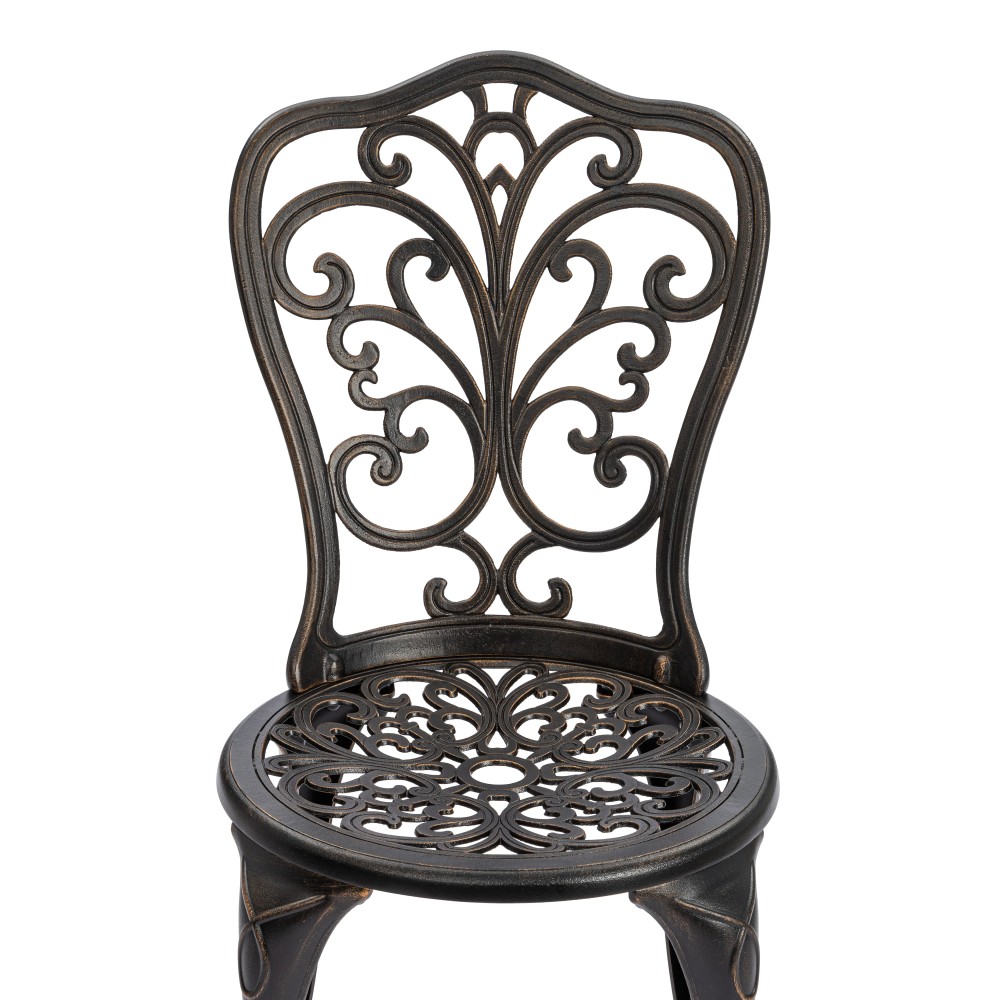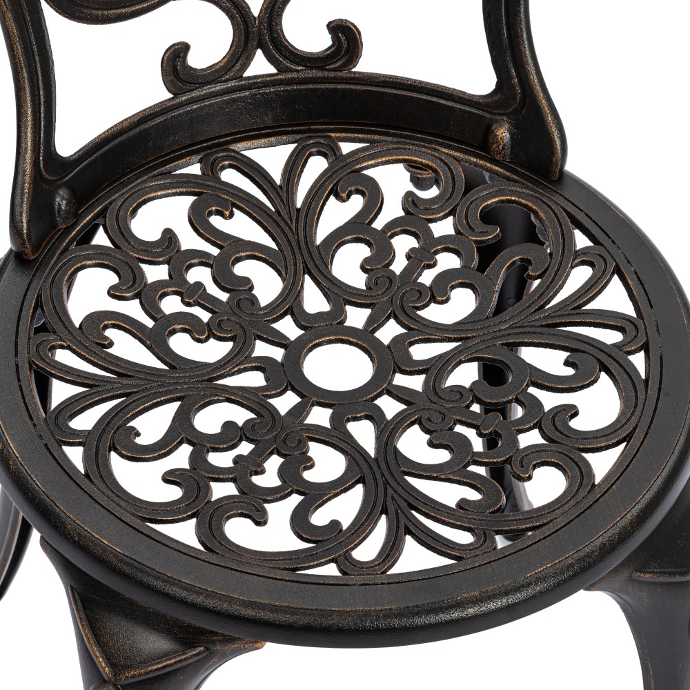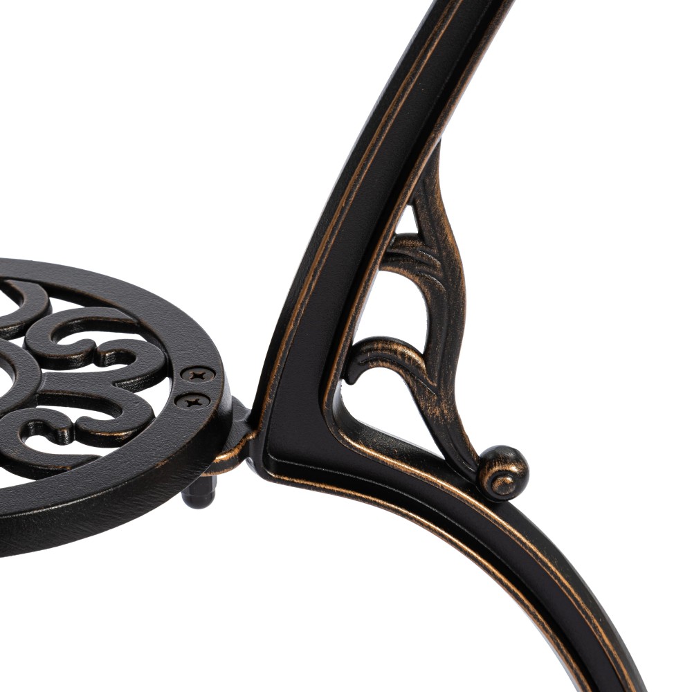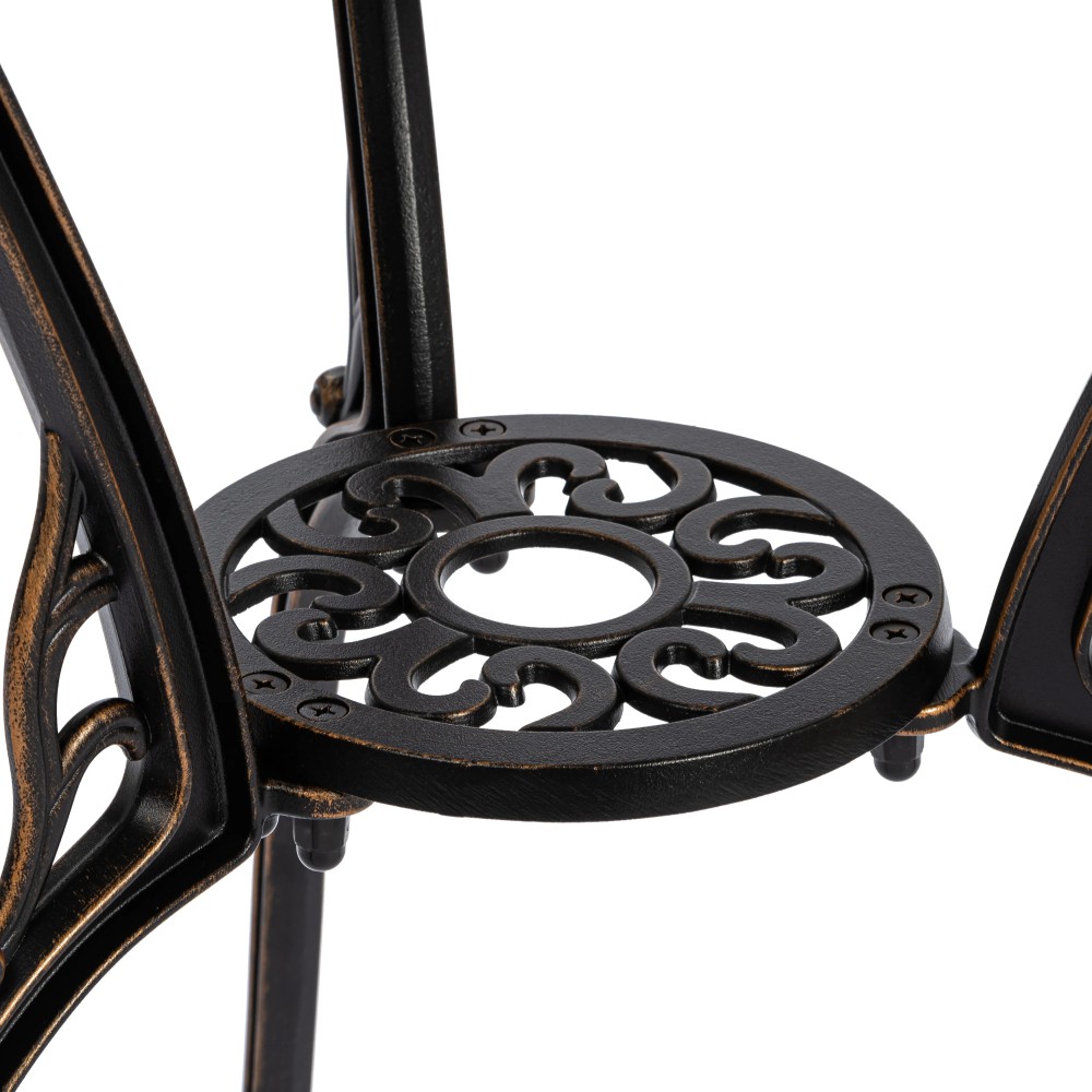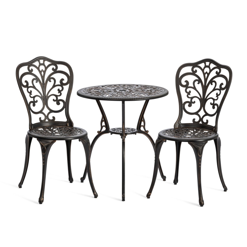 Элегантный комплект кованой мебели Romance/Романс — изысканное решение для оформления сада, террасы, балкона или уютной зоны отдыха на загородном участке. Набор состоит из круглого стола и двух стульев и идеально подходит для комфортных завтраков на свежем воздухе, романтических вечеров и приятных встреч с близкими. Плавные витиеватые изгибы ажурных орнаментов столешницы и спинок стульев, выполненные вручную, придают мебели утончённость и особый шарм. Художественная ковка добавляет индивидуальности экстерьеру и гармонично вписывается как в классический, так и в прованский или винтажный стиль ландшафтного дизайна. Устойчивый стол на трёх ножках дополнен миниатюрной нижней полочкой, которая повышает функциональность конструкции. Два удобных стула выглядят лёгкими и практически невесомыми, при этом отличаются высокой прочностью и надёжностью. Комплект садовой мебели Romance/Романс изготовлен из прочного металла, устойчив к перепадам температур, влаге, солнечным лучам и другим погодным условиям. Мебель выдерживает значительные нагрузки, не требует сложного ухода и на долгие годы сохраняет презентабельный внешний вид. Комплект поставляется в разобранном виде, что обеспечивает удобство транспортировки и сборки.