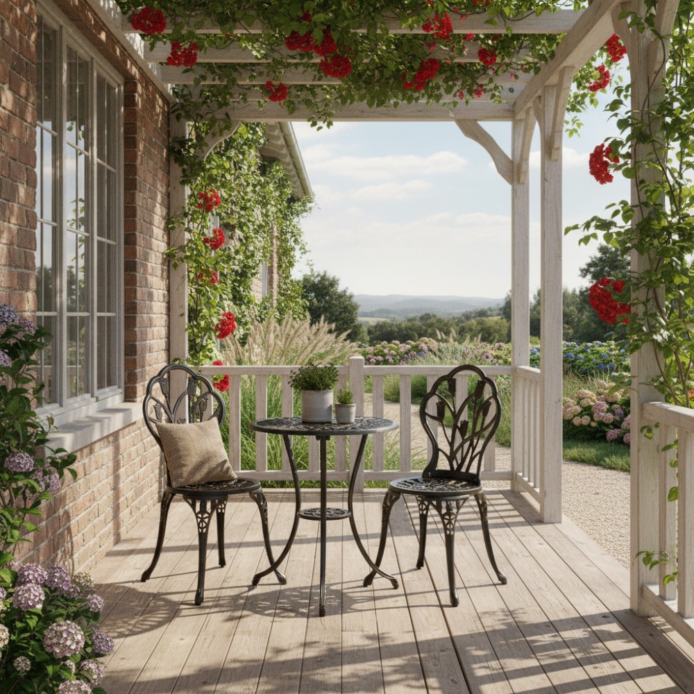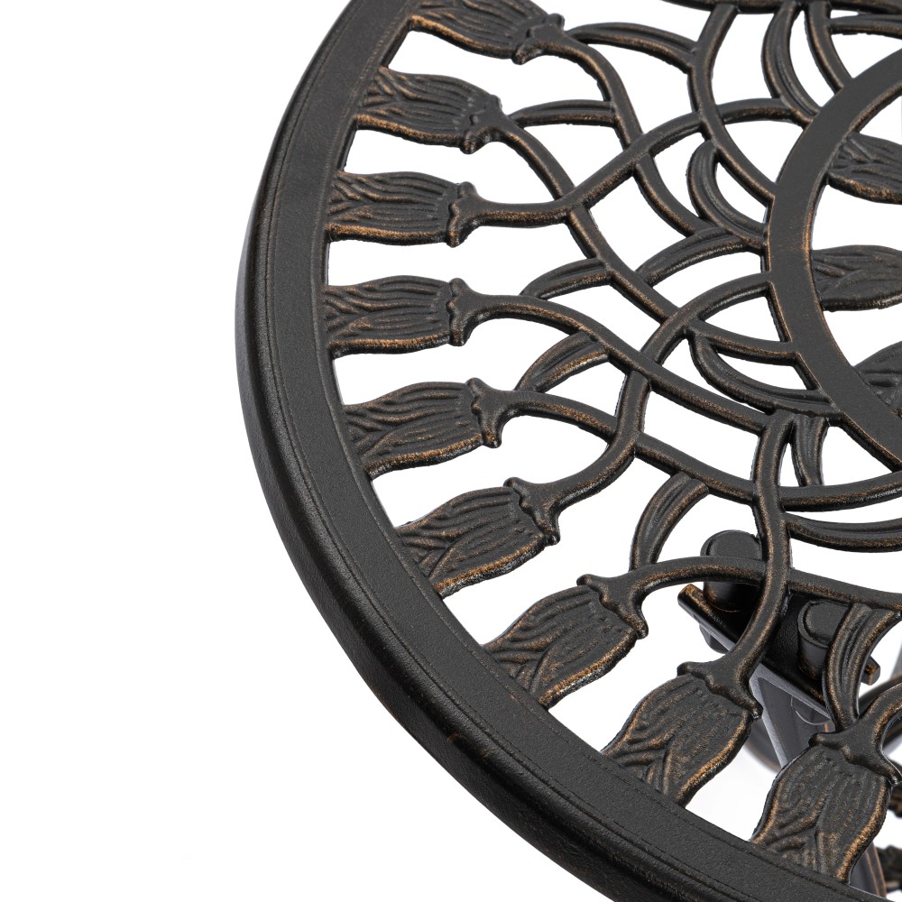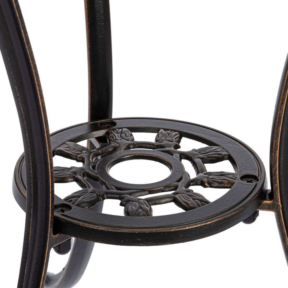 Комплект Waltz of Flowers/Вальс Цветов — Ваш Оазис Комфорта и Красоты! Мечтаете об уютном уголке для отдыха на свежем воздухе, но пространство ограничено? Комплект уличной мебели Waltz of Flowers/Вальс Цветов — идеальное решение для балкона, террасы, лоджии или небольшого дворика. Компактные размеры и продуманная конструкция позволяют создать стильную зону отдыха даже на небольшой площади. Изящный стол — сердце вашего пространства В центре комплекта — элегантный и устойчивый столик с оригинальной конструкцией на трёх ножках. Такое решение обеспечивает надежную устойчивость даже на неровной поверхности. Миниатюрная нижняя полочка добавляет функциональности: здесь удобно разместить книгу, чашку кофе, смартфон или небольшой декоративный элемент. Кованые элементы придают столу утончённость, а прочный металлический каркас с защитным покрытием гарантирует долговечность и устойчивость к влаге, солнечным лучам и перепадам температур. Стулья с цветочным настроением Два стула с выразительным крупным цветочным орнаментом создают атмосферу романтики и уюта. Художественная ковка в виде цветочного узора выглядит легко и изящно, добавляя комплекту индивидуальность и декоративность. Стулья не только эстетичны, но и удобны — эргономичная форма спинки способствует комфортному отдыху. Прочная металлическая конструкция выдерживает значительные нагрузки и подходит для ежедневного использования на открытом воздухе. Практичность и долговечность Комплект садовой мебели отличается: устойчивостью к любым погодным условиям, прочной металлической конструкцией, износостойким защитным покрытием, простотой ухода, компактностью и функциональностью. Кованый комплект Waltz of Flowers/Вальс Цветов — это гармоничное сочетание эстетики, надежности и удобства. Идеальный выбор для тех, кто ищет стильную и компактную мебель для балкона, террасы или сада. Создайте свой уголок вдохновения и наслаждайтесь отдыхом каждый день! Комплект поставляется в разобранном виде, что обеспечивает удобство транспортировки и сборки.