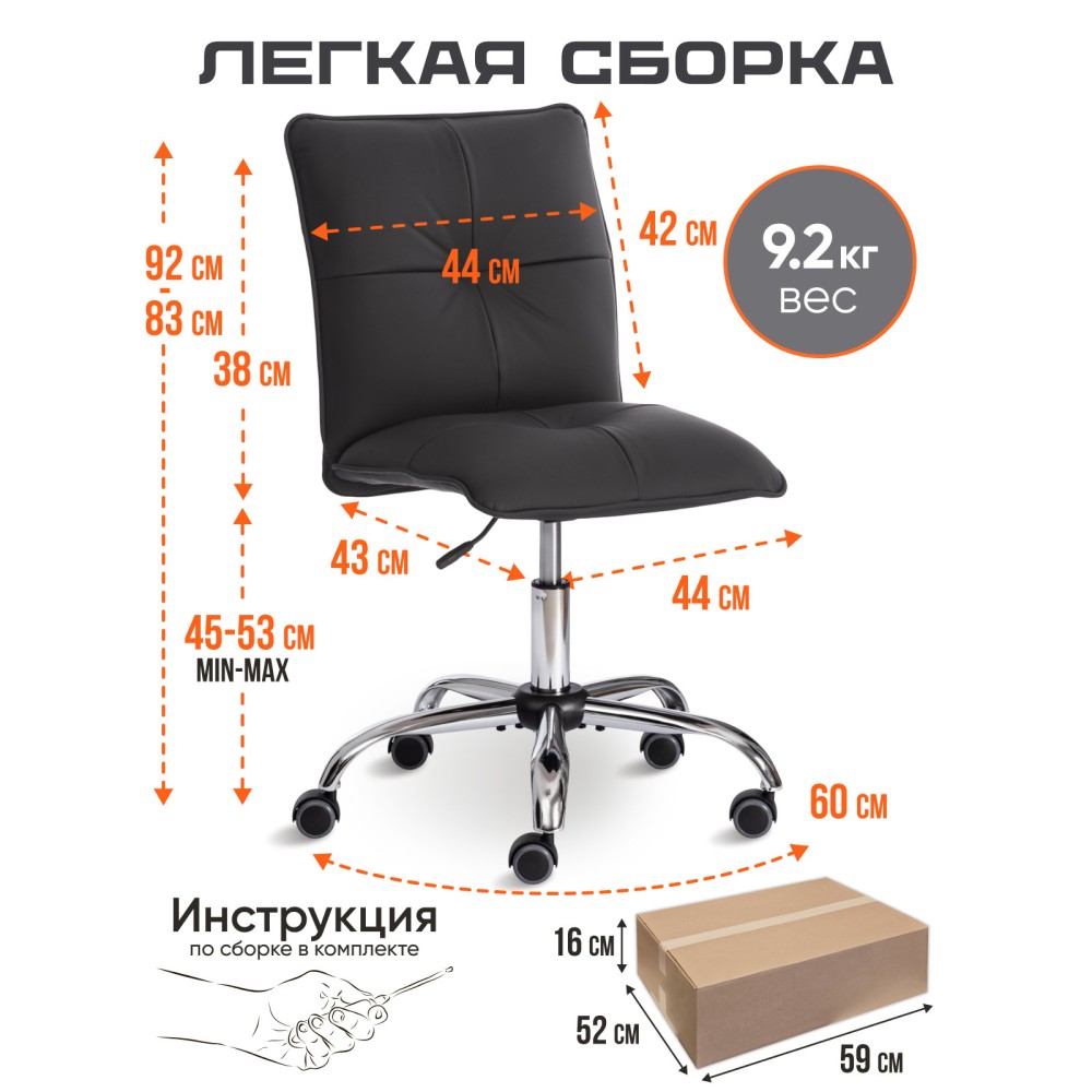 Кресло Azura — это стильная и комфортная модель, подходящая как для домашнего использования, так и для офисов. Вот основные характеристики и преимущества данного кресла: 1. Основание: 5-лучевая стальная хромированная крестовина обеспечивает надежность и устойчивость кресла. Диаметр основания составляет 600 мм, что гарантирует хорошую устойчивость. 2. Ролики: Кресло оснащено роликами с полиуретановым (прорезиненным) покрытием, которые подходят для использования на паркетных и ламинированных полах, предотвращая их повреждение. 3. Газовый лифт: Хромированный газовый лифт класса 3 с ходом около 100 мм позволяет легко регулировать высоту сиденья, что делает кресло удобным для людей различных ростов. 4. Механизм: Работа механизма изменения высоты сиденья проста и интуитивно понятна, что позволяет быстро подстроить кресло под свои параметры. 5. Подлокотники: В конструкции кресла не предусмотрены подлокотники, что создает более открытое и современное оформление. 6. Наполнение: Сиденье выполнено из фанеры толщиной 10 мм и наполнено первичным ППУ (полиуретановой пеной) плотностью не менее 22 кг/м3, что обеспечивает комфорт и поддержку. Спинка также имеет металлокаркас и подобное наполнение. 7. Обивка: Кресло выполнено из износостойкой высокопрочной экокожи, что делает его более практичным и легким в уходе. 8. Максимальный вес пользователя: Кресло рассчитано на нагрузку до 100 кг. Кресло Azura сочетает в себе стильный дизайн, функциональность и комфорт, что делает его отличным выбором для любого интерьера.