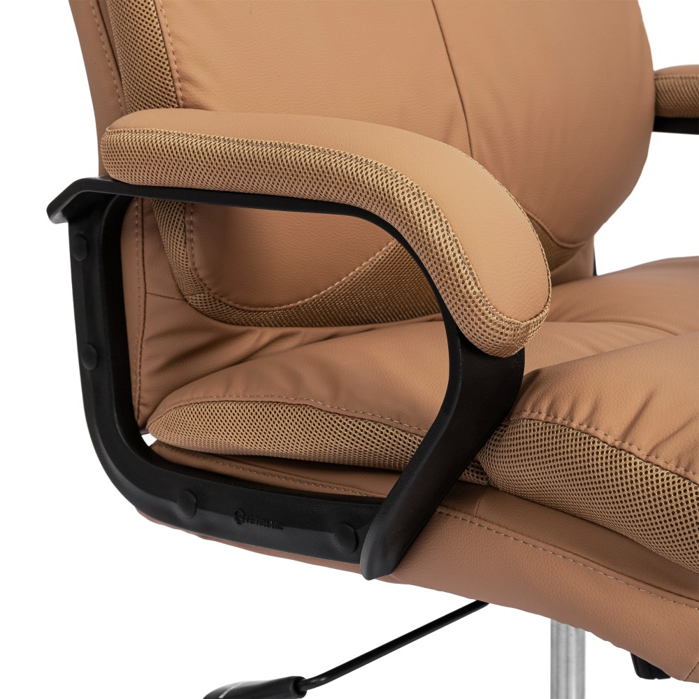 Эргономичная спинка, прочный каркас, мягкое сиденье компьютерного креслаюк Дюк МеталБл/ Duke metalBL - воплощение элегантности, практичности и солидности. Модель отлично впишется в дизайн рабочего кабинета как офиса, так и дома. Каркас из экологически безопасной фанеры толщиной до 15 мм гипоаллергенен и надежен. Широкое сиденье с мягким наполнителем из пенополиуретана стандартной плотности (до 35 кг/м2) с независимыми пружинными блоками подстраивается под контуры тела человека, обладает отличными эксплуатационными качествами. Регулировка высоты и наклона с фиксацией в любом положении до 15 градусов помогут принять комфортную позу для продолжительной работы. Cтальная крестовина покрытая черной порошковой краской (разборная), толщина стенки трубы 1,1 мм Соответствует стандарту Bifma/Бифма. Диаметр крестовины 700 мм. Крестовина обладает долгим сроком службы, не требует сложного ухода, не теряет своего первоначального внешнего вида на протяжении длительного времени. Полиуретановые ролики с прорезиненными вставками бесшумны, не повреждают напольное покрытие. Ролики и крестовина в креслах бренда Tetchair/Тетчэйр соответствуют стандарту Bifma/Бифма. Во всех креслах бренда Tetchair/Тетчэйр используются газлифты 3 класса, он способен выдерживать вес до 120 кг. Мягкий подголовник, удобные фиксированные подлокотники с накладками снимут напряжение с шеи и плеч. Офисное кресло, обитое прочной обивкой, выдерживает до 50 000 циклов на истирание по Мартиндейлу. Уникальная модель Дюк МеталБл/ Duke metalBL подчеркнёт безупречный вкус владельца и придаст интерьеру презентабельный вид. Максимальная нагрузка 120 кг. Компьютерное кресло поставляется в разобранном виде. Требуется простая сборка по прилагаемой инструкции.