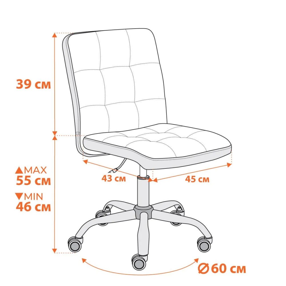 Кресло FIESTA/Фиеста — идеальное сочетание комфорта, функциональности и современного дизайна. Это кресло станет отличным выбором для тех, кто проводит много времени за компьютером, обеспечивая настоящую поддержку и удобство. Ключевые особенности кресла FIESTA/Фиеста: - Устойчивость и надежность. Прочная 5-лучевая стальная хромированная крестовина (диаметр 600 мм) обеспечивает высокую устойчивость, а ролики с полиуретановым напылением защищают ваше напольное покрытие от повреждений, что делает кресло подходящим для паркета и ламината. - Регулируемая высота. Сиденье из фанеры (10 мм) и спинка с металлическим каркасом, наполненная ППУ плотностью не менее 30 кг/м³, обеспечивают оптимальную поддержку и комфорт даже при длительном использовании. - Качественная обивка. Обивка из велюра придает креслу презентабельный вид и защищает его от загрязнений. Этот материал долговечен, легко чистится и обеспечивает хороший воздухообмен - Современный дизайн. Стильное оформление кресла сделает его отличным дополнением к любому интерьеру, добавляя уют и элегантность в ваш дом или офис. Дополнительные характеристики: - Максимальная нагрузка: 100 кг. - Сборка. Кресло поставляется в разобранном виде, комплектуется простой инструкцией для сборки. Кресло FIESTA/Фиеста — ваш надежный помощник для комфортной работы и отдыха в любое время.