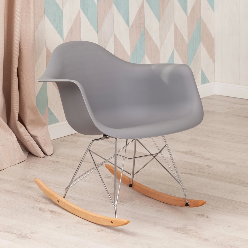 Стильное кресло-качалка CINDY из коллекции Modern создано в стиле творений американских дизайнеров супругов Имз. Их целью было создание максимально удобной мебели, которая будет подходить для большинства людей, вне зависимости от их роста и веса. Сочетание пластикового сиденья серого цвета, классического металлического каркаса и полозьев из дерева придает креслу особенную красоту и оригинальность. Эргономичная спинка, удобное сиденье и подлокотники позволят комфортно провести свой досуг. Равномерные покачивания способствуют максимальному расслаблению, подарят ощущение спокойствия и уюта. Красивое, удобное, не боящееся влаги и изменений погодных условий кресло-качалку CINDY можно использовать не только дома, но и на веранде, балконе, открытой террасе. Модель устойчива, надежна, способна выдержать большую нагрузку без риска опрокидывания. Пластик, металл и массив дерева – прочные и долговечные материалы, не требующие специального ухода. Кресло подойдёт для дачи, для террасы или для загородного дома. Кресло очень простое в сборке, инструкция по сборке прилагается.