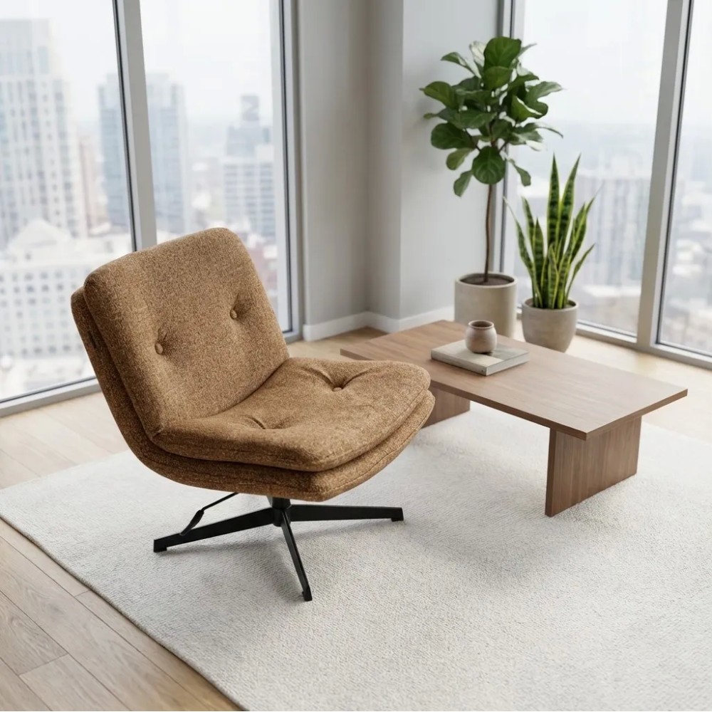 Представляем вам кресло Oslo/Осло – идеальное решение для тех, кто ценит стиль, комфорт и практичность. Это не просто предмет мебели, а настоящий центр притяжения в любом пространстве. Универсальность: Кресло Oslo/Осло легко впишется как в рабочую зону, так и в зону отдыха, будь то дома или в офисе. Оно станет прекрасным дополнением к вашей лаунж-зоне, гостиной, детской, на балконе, как в квартире так в загородном доме создавая уютную атмосферу. Элегантный дизайн: Изящные изгибы и обтекаемые формы кресла подчеркивают его выразительность и привлекательность. Богатая цветовая палитра позволяет легко подобрать вариант, который гармонично дополнит ваш интерьер. Продуманная функциональность: Оцените удобство поворотной опоры с вращением на 360 градусов, функции качания и регулировки высоты – все для вашего максимального комфорта. Разнообразие материалов: Выбирайте из роскошного букле, нежного велюра, стильных комбинаций букле и велюра с экокожей, или моноткани из мебельной экокожи. Такое разнообразие гарантирует, что вы найдете идеальное воплощение для своего вкуса. Непревзойденный комфорт: Широкая спинка и эргономичное сиденье обеспечивают превосходную поддержку, а многослойный наполнитель из ППУ сохраняет форму кресла на долгие годы. Гарантия качества: Прочный цельносварной металлический каркас, изготовленный с использованием современных технологий, обеспечивает долговечность. Специальная подготовка металла и высококачественное порошковое окрашивание с матовой шагренью не только придают креслу изысканный вид, но и защищают его от повреждений, гарантируя безупречное покрытие. Долговечность формы: Многослойный ППУ наполнитель гарантирует, что ваше кресло будет выглядеть как новое даже после длительного использования. Удобство в каждой детали: Подпятники позволяют установить кресло ровно даже на неровной поверхности, а компактная упаковка облегчает транспортировку и хранение. Кресло Oslo/Осло – это не только стильный акцент, но и ваш надежный спутник в работе и отдыхе, дарящий исключительный комфорт и эстетическое наслаждение.