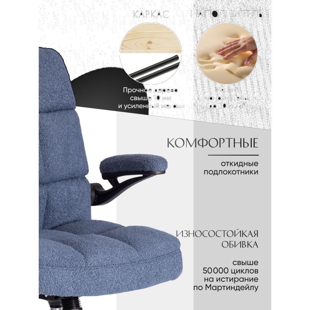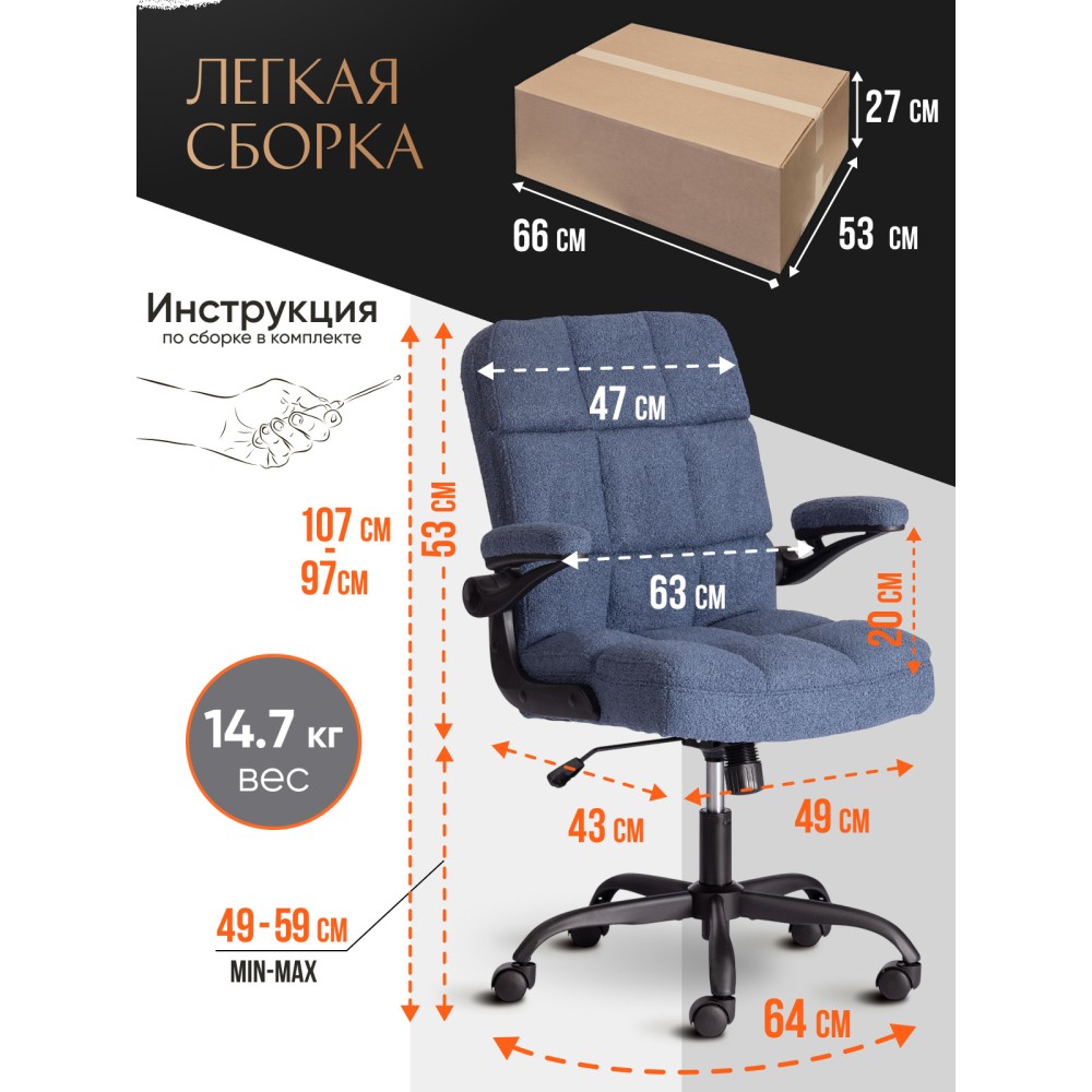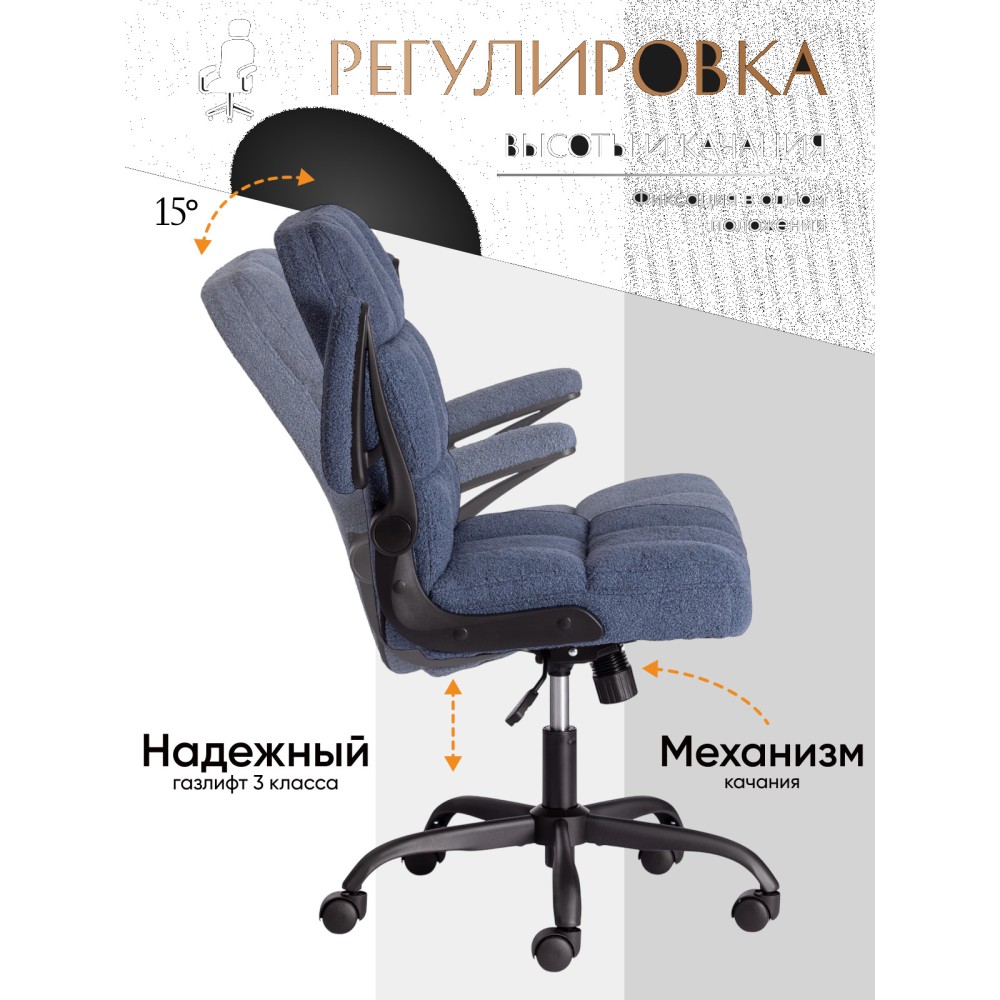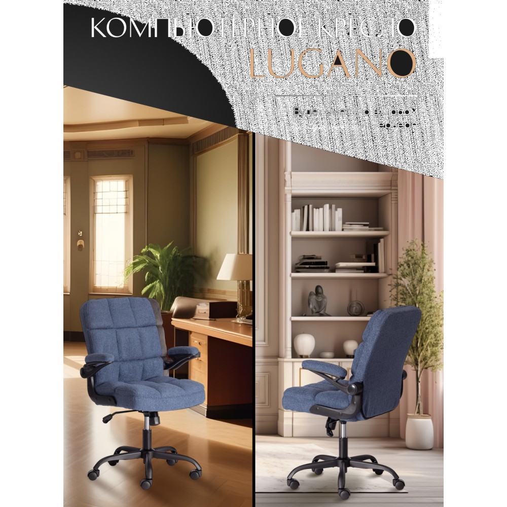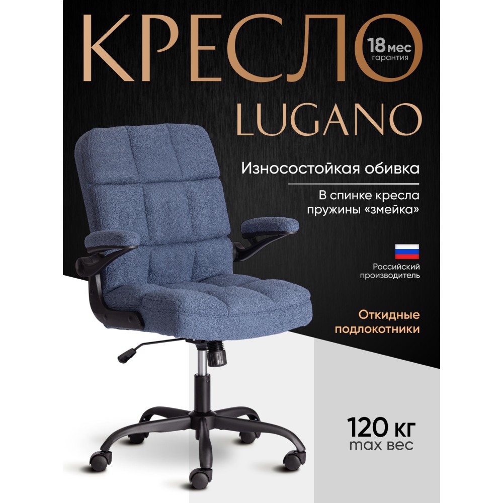Кресло Lugano — идеальный вариант для создания комфортной и функциональной рабочей среды как в офисе так дома. Идеальное решение для домашнего кабинета или офисного пространства. Вот основные характеристики и преимущества: 1. Материалы и конструкция: Стальная крестовина черного цвета с 5 лучами обеспечивает надежность и устойчивость. Крестовина разборная, диаметр 640 мм. Полиамидные колеса отлично подходят для различных типов пола, включая паркет и ламинат. Сертификация по тесту BIFMA гарантирует высокую прочность и безопасность. 2. Регулировка высоты: Газовый лифт 3 класса позволяет быстро и легко подстраивать высоту сиденья под индивидуальные предпочтения пользователей. 3. Механизм качания: Функция качания с возможностью регулировки жесткости и фиксации в одном положении с углом наклона до 15 градусов, обеспечивает комфорт при длительной работе. 4. Подлокотники: Откидные подлокотники с мягкими накладками добавляют в кресло дополнительные удобства, позволяя расслабиться во время отдыха. 5. Наполнение: Сиденье выполнено из первичной фанеры 12 мм класс эмиссии Е1 и высококачественного ППУ плотностью 28 кг/м3, что обеспечивает комфорт и поддержку. Спинка - металлокаркас. В спинке кресла имеются пружины "змейка", 6. Обивка: Используемая буклированная ткань teddy обладает высокой износостойкостью не менее 20000 циклов по тесту Мартиндейла, плотностью 250 г/м2, благодаря чему кресло долго сохраняет свой привлекательный вид. 7. Вес: Легкий вес позволяет удобно перемещать кресло по пространству, не затрачивая много усилий. 8. Максимальная нагрузка: Кресло рассчитано на пользователей весом до 120 кг, что делает его универсальным для большинства людей. Кресло Lugano сочетает в себе стильный дизайн и функциональность, что делает его отличным дополнением для любого современного пространства.