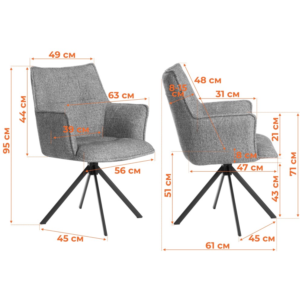 Представляем вам кресло Lutz/Луц – воплощение итальянской элегантности и безупречного комфорта, которое станет настоящим украшением вашего дома. Его утонченный дизайн гармонично дополнит любое пространство, будь то просторная гостиная, уютная кухня или элегантный кабинет. Что делает кресло Lutz/Луц особенным: Свобода движений: Благодаря функции вращения на 360 градусов, вы сможете легко менять положение и наслаждаться максимальным удобством и безопасностью в любой момент. Прочность и экологичность: Надежный металлический каркас спинки в сочетании с гнутоклеёным березовым шпоном толщиной 10 мм гарантирует долговечность и создает приятное, экологичное сиденье. Непревзойденный комфорт: Первичный ППУ с плотностью от 22 до 60 мм обеспечивает идеальную поддержку и ощущение мягкости. Долговечность и простота ухода: Износостойкая обивка, способная выдержать до 50 000 циклов истирания по Мартиндейлу, сохранит свой первозданный вид на долгие годы и не потребует сложного ухода. Стильные и надежные опоры: Черные муаровые металлические опоры толщиной 1,5 мм и кронштейны толщиной 2-3 мм не только придают креслу изысканный вид, но и обеспечивают его устойчивость. Высокая грузоподъемность: Кресло рассчитано на нагрузку до 120 кг, что подтверждает его надежность и прочность. Бережная доставка: Каждое кресло упаковано с особой заботой, чтобы оно прибыло к вам в идеальном состоянии. Кресло Lutz/Луц – это превосходный выбор для тех, кто стремится создать в своем доме атмосферу стиля, качества и исключительного комфорта!