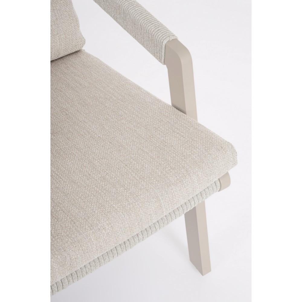 Минимальный заказ данной модели 2 шт. Данное изделие предназначено только для домашнего использования. КреслоEmery-идеальное сочетание стиля и удобства.Кресло привлекает внимание и станет прекрасным дополнением гостиной зоны на открытом пространстве. Оно изготовленоиз алюминия, имеет веревочное плетение и мягкие подушки на сиденье и спинке. Особенности: Каркасвыполнен из алюминия с порошковым покрытием (полиэстер). Веревочное плетение на спинке и подлокотниках из полиэстерных шнуров, благодаря которымкресло выглядит стильно в любом помещении или на открытой площадке. Съемные подушки сиденья и спинки из водоотталкивающей, устойчивой к солнцу олефиновой ткани (100% полипропилен). Винты из нержавеющей стали. Ножки требуют сборки. Для уточнения всех возможных вариантов материала и цвета данного изделия обращайтесь к нашим менеджерам.