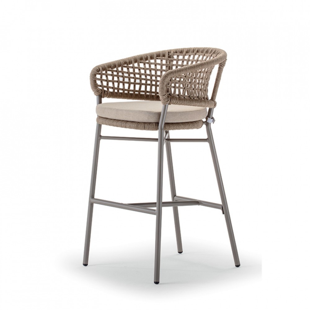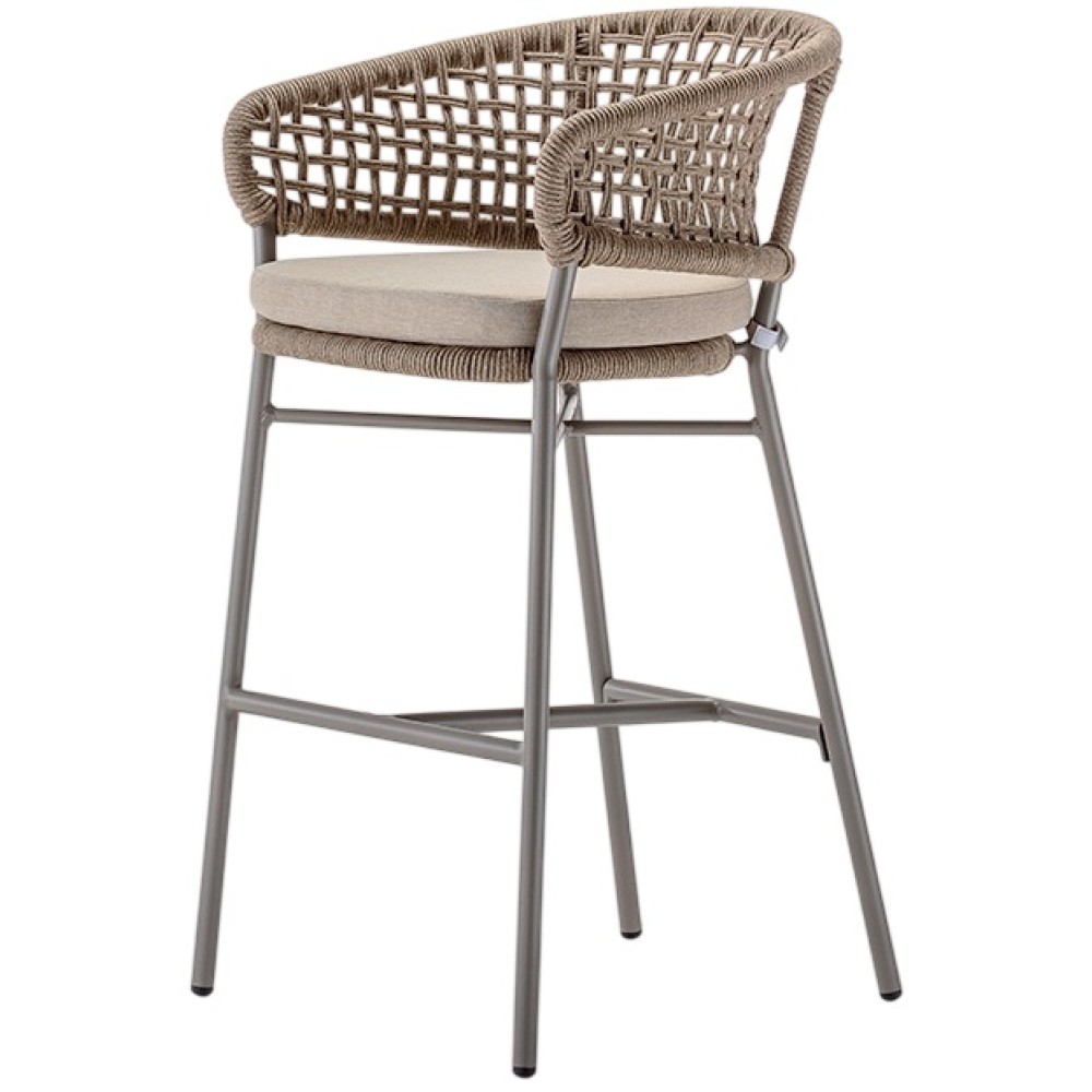 Данная продукция возится только под заказ с фабрики по предоплате. БарноекреслоAtolимеет каркас из алюминия, оплетенный синтетическим канатом (роуп), и мягкую подушку на сиденье из олефина,устойчивогок пятнам и ультрафиолетовому излучению. Кресло с высоким сиденьем обеспечивает расслабление "на ходу" и подходит для оживленного образа жизни. Барные кресла из коллекцииAtolстанут подходящим изделием для частных летних площадок, а также интерьеров и террас кафе, баров, ресторанов и различных зон отдыха.