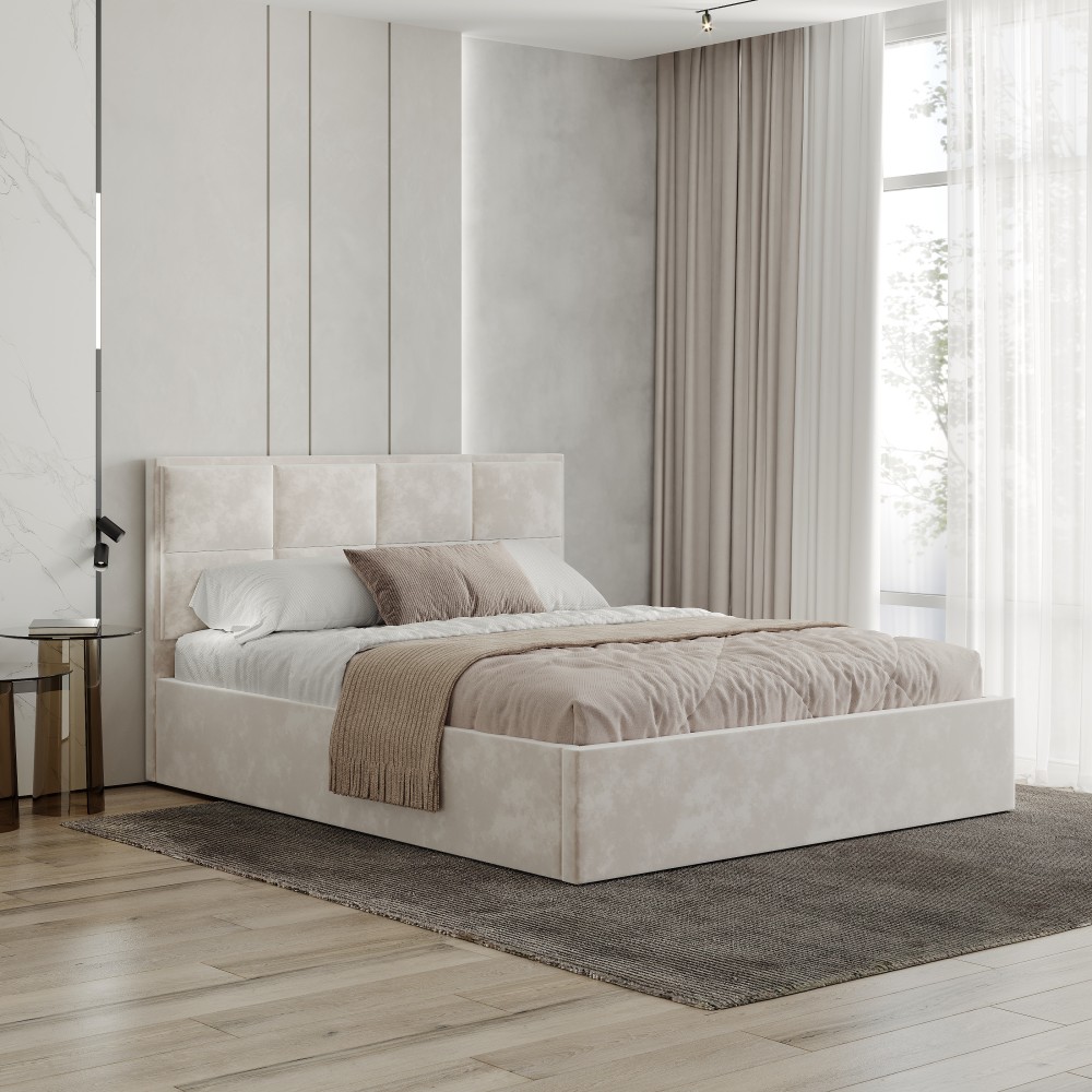 Материал, используемый в изготовлении кровати, - велюр.