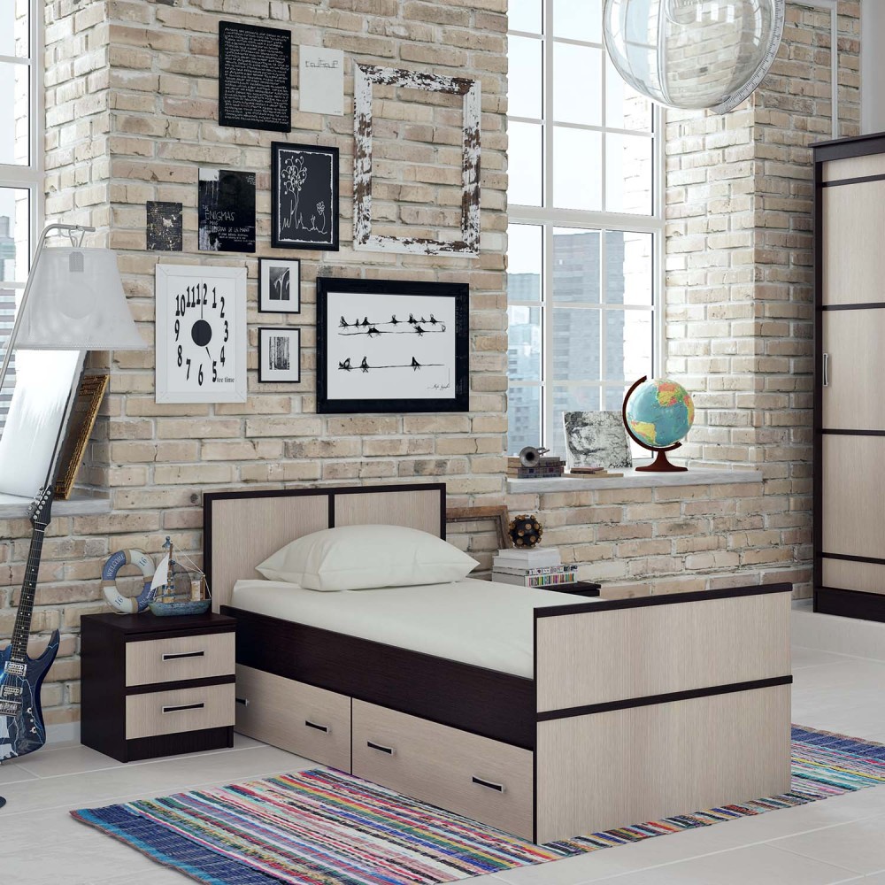 Односпальная кровать "Сакура" выполнена из ЛДСП высокого качества в контрастных цветах "венге" и "лоредо". Данная модель оснащена двумя выдвижными ящиками, в которых можно хранить постельные принадлежности или игрушки. Ящики находятся с одной стороны, но установить их можно с любой стороны. Изделие не имеет ножек, а значит избавит вас от скопления пыли под основанием.