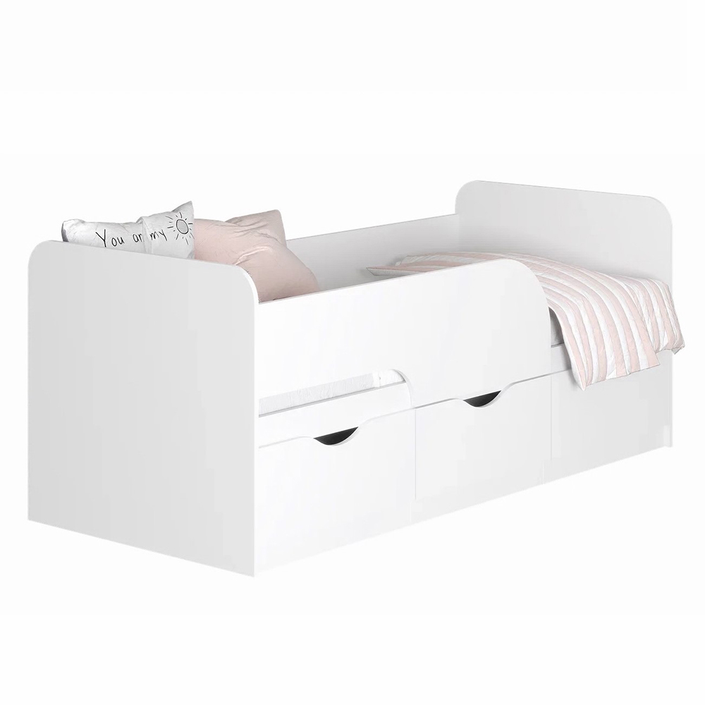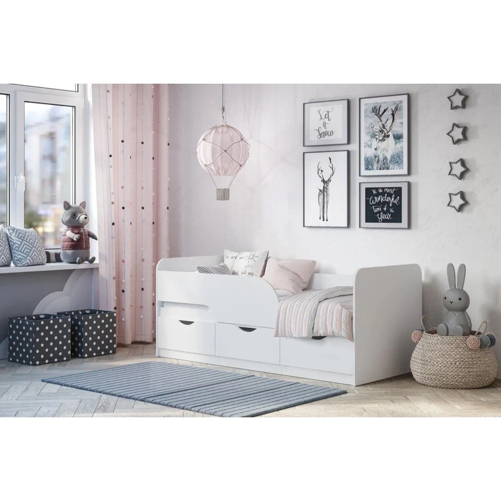 Кровать Стандарт выполнена в современном стиле, который подойдёт для любого интерьера детской. Модель комплектуется тремя вместительными ящиками, в которых вы можете разместить игрушки, постельное белье и даже одежду ребенка. На фасадах ящиков отсутствует лицевая фурнитура для большей безопасности детей.