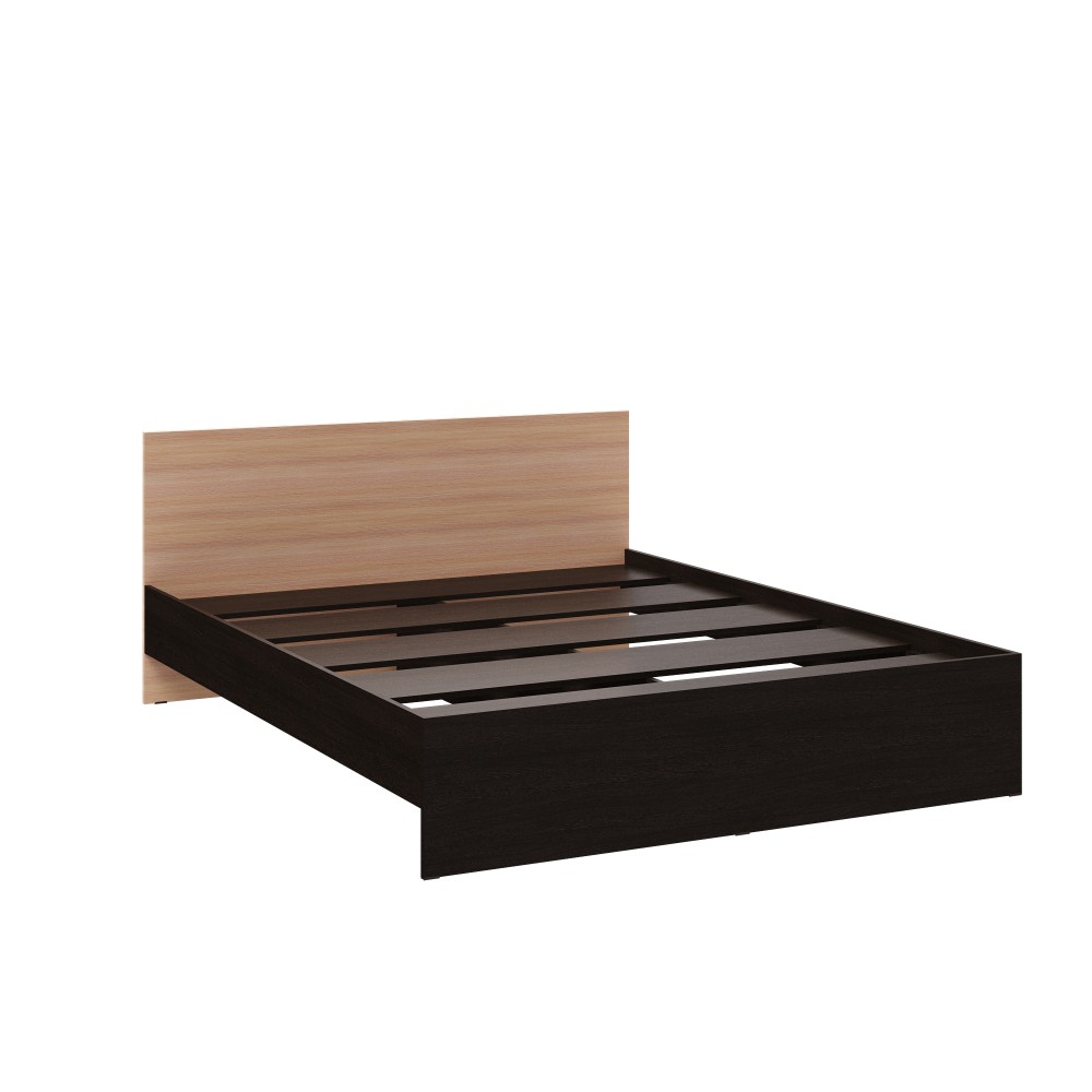 Выразительное высокое изголовье служит не только декоративным элементом, но и обеспечивает удобную поддержку во время чтения или отдыха. Конструкция основания включает прочные ЛДСП-ламели, надёжно закреплённые в каркасе. Они обеспечивают стабильную опору для матраса, способствуют правильному распределению нагрузки и поддерживают естественную вентиляцию, что делает спальное место практичным и комфортным для ежедневного использования.