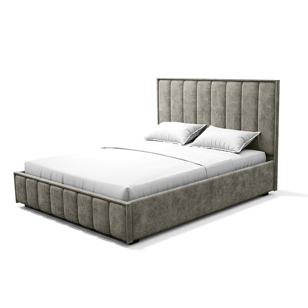 Изголовье, царги и изножье - это мягкие части кровати. Изголовье и изножье оформлены мягкими накладками, расцветка соответвует варианту исполнения. Ткань обивки - велюр.