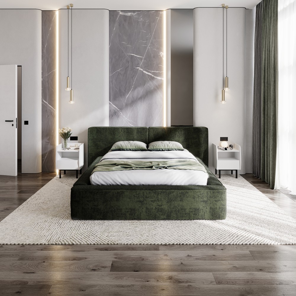 Материал мягких частей - велюр, искусственная замша. Декор изголовья и изножья - элегантный кант.