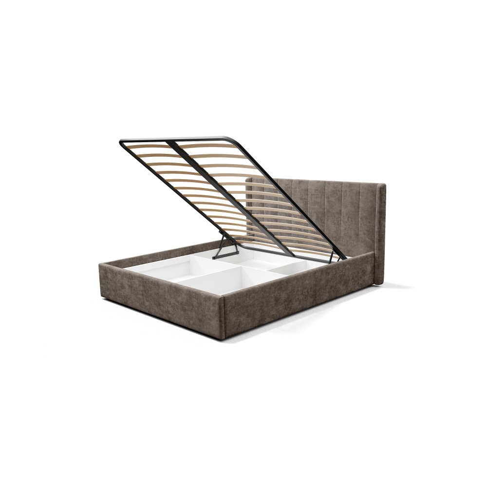 — Материал мягких частей - велюр, задняя сторона - спанбонд серый. Декор изголовья - стежка.
