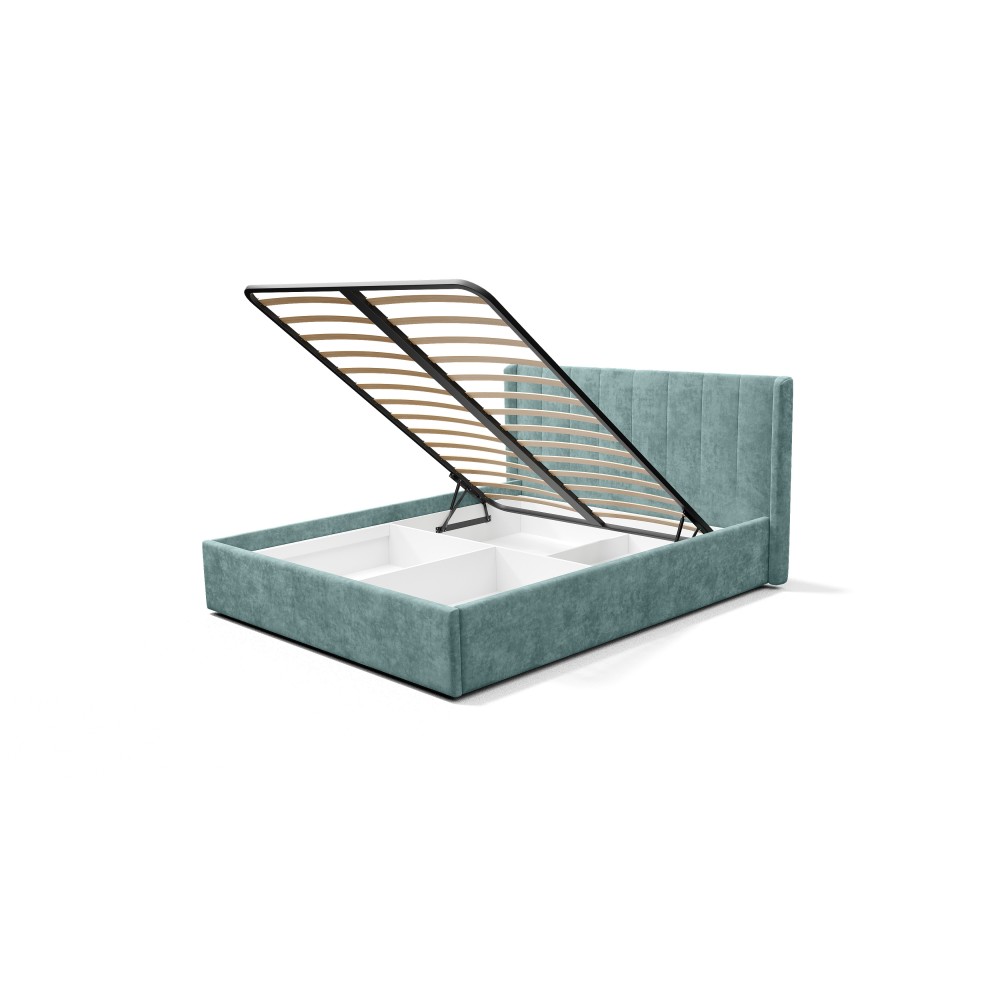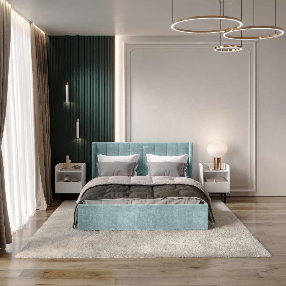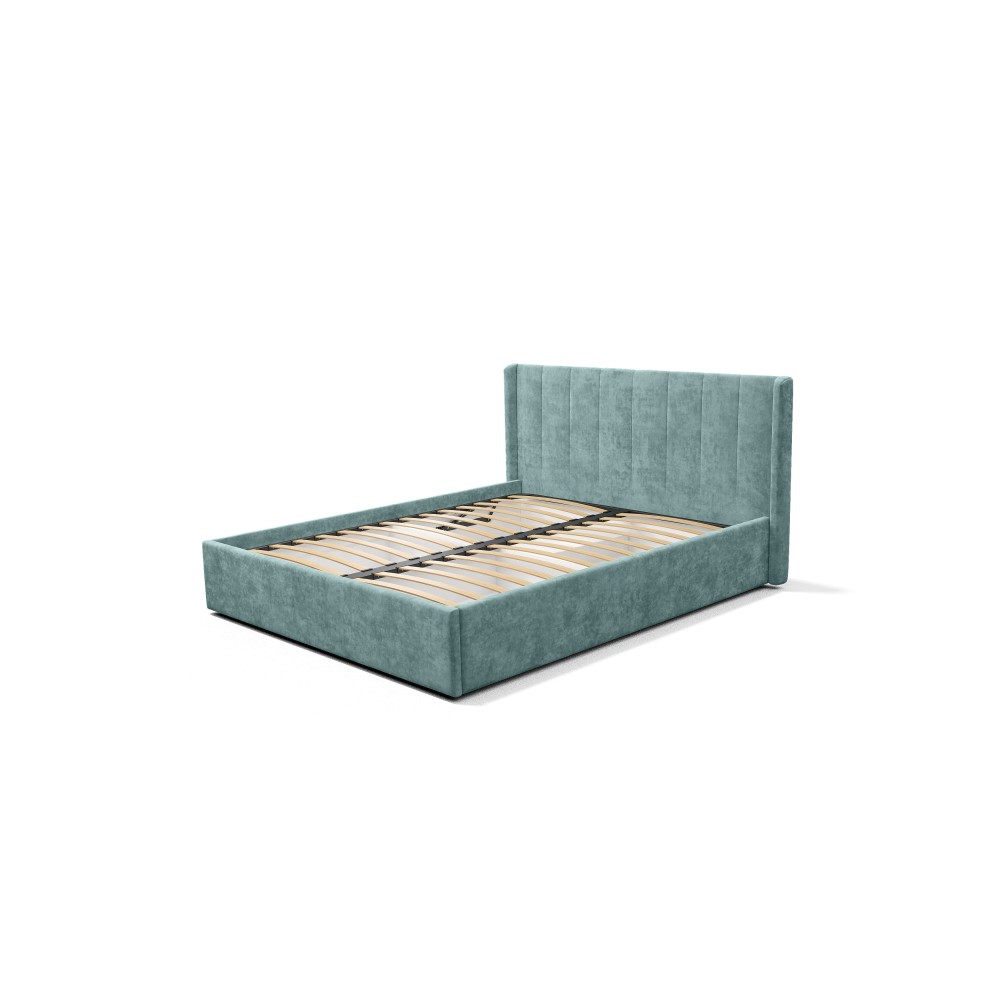 — Материал мягких частей - велюр, задняя сторона - спанбонд серый. Декор изголовья - стежка.